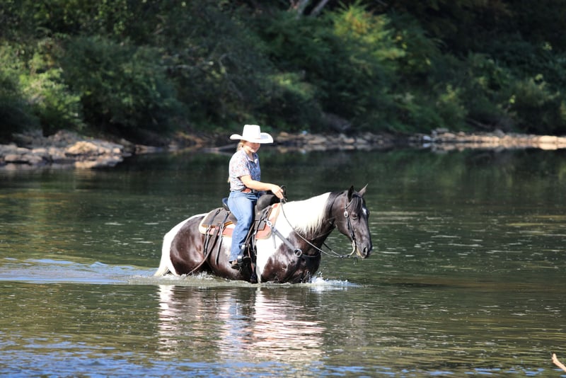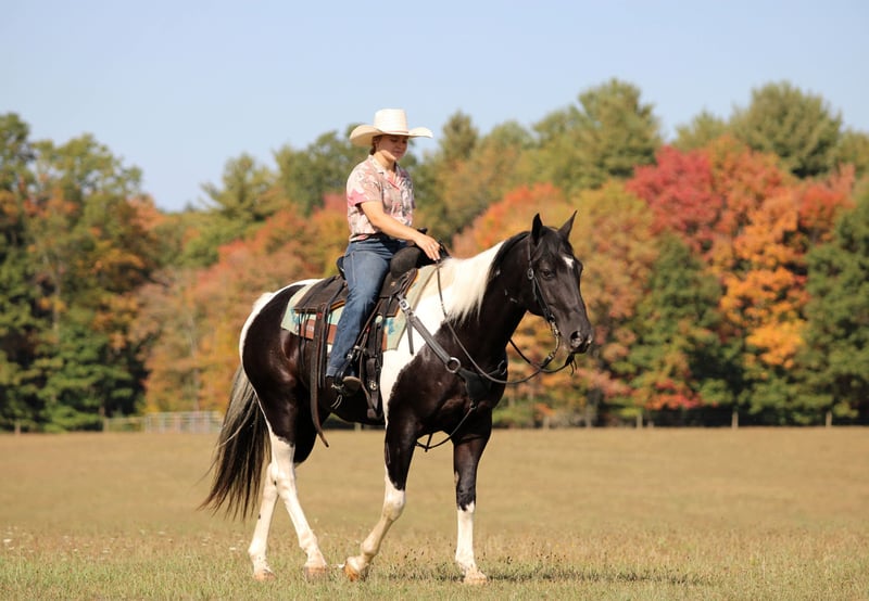 🍂 𝓐𝓾𝓽𝓾𝓶𝓷 𝑨𝑳𝑳 𝑺𝑻𝑨𝑹 𝑳𝑰𝑵𝑬𝑼𝑷 🍂 Happening now thru MONDAY | OCTOBER 6th - Available EXCLUSIVELY on HorseBid's website! For more details and to register visit: www.Horsebid.com CONSIGNOR CONTACT: LT Equine 724-664-5327 LOCATION: Miola PA BREED: Paint REGISTERED: No COLOR: Black and white Tobiano HEIGHT: 15.1 AGE: 10 GENDER: Gelding If you're looking for a fantastic trail horse with many miles under his belt for any level rider than Dice is your man! Dice has been a trail horse his whole life, he’s taken all levels of riders all over the countryside. He is a been there done that kind of horse. He is very chill and relaxed and takes the toughest trails with ease! Standing 15.1 hands tall and nicely built he can carry all sized riders. Dice has a fantastic loose one hand neck rein. He moves off leg and listens perfectly to his ques! He has a nice slow trot and a very smooth lope, dice will also arena ride where he can see his head and pick up both leads making him a great candidate for a lesson horse! Dice has very good ground manners, and is smart and respectful of your space. He will pick up all four feet with ease and is great for the farrier. Where dice really excels is on the trail, if your wanting a safe, confident, and quiet trail horse look no farther! He will go out alone, or in a group, lead or follow. He is traffic safe and not spooky or scared of the mud. If you have any more questions feel free to call or text! Thank you and give Dice’s video a watch!