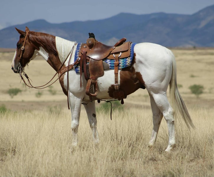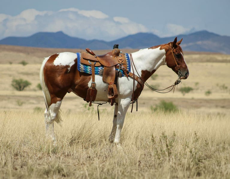 ONLINE AUCTION Place your bids at www.PlatinumEquineAuction.com Starting Bid $3500 Auction ends August 3rd, 2025 Need a new saddle? Check out White Rock Saddles on our website or Facebook Hard On The Rocks aka Rip is a Beautiful, Seasoned Sorrel Tobiano Paint, that is a 2015 model, reg APHA, gelding that is standing 15.1hh. Rip is a handsome paint gelding with all the experience and heart you could ask for. Rip has been used extensively on the ranch and trails. He’s gathered cattle in big mountain country, crossed rivers, navigated rocky terrain, and he’s no stranger to a long day’s work. He’s also been ridden through town — traffic-safe, calm, and steady no matter the situation. One of Rip’s best qualities? He’s easy to leave off and easy to bring back. Whether it’s been a week or a month, he saddles up quiet and rides off like a gentleman. He’s smooth, easy to ride, and gets along well with other horses in the pasture or on the trail. While he’s good for anyone, Rip does seem to have a soft spot for the ladies — he’s happiest with a kind, quiet rider. If you want a horse that’s been there, done that, and still has plenty of good years ahead of him, Rip is your guy. He is located in Nogales, AZ. Contact Kyle with Thunder Valley Ranch 402-910-6476 with any questions. Shipping is available anywhere in the US. ONLINE AUCTION Place your bids at www.PlatinumEquineAuction.com Starting Bid $3500 Auction ends August 3rd, 2025 Need a new saddle? Check out White Rock Saddles on our website or Facebook