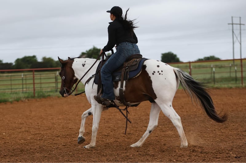 ONLINE AUCTION Place your bids at www.PlatinumEquineAuction.com Starting Bid $3500 Auction ends July 7th, 2024 Need a new saddle? Check out White Rock Saddles on our website or Facebook! Bandit is an 9 year old Grade Paint gelding that stands at 14.1 hands. Bandit will steal your heart with his amazing personality and calm disposition. He is gentle and kind with an adorable puppy dog personality. He comes running to you from the far end of the pasture just for some love, no treats needed to catch this guy! Bandit is a gentleman on the ground and in the saddle. He has a very smooth trot and lope that’s easy to sit. He will neck rein or direct rein. He is happy to collect and move a little slower or extend his gaits and cover some ground. Bandit does well being ridden by himself or with other horses. He has been ridden around cattle, gone on long distance trail rides, and gone to some play days. He will make an excellent all around horse that will quite literally go all day long. He is very consistent and does well with time off. Bandit stands stands tied nicely to be groomed, saddled, and bathed. He has been seen by our vet, farrier, dentist, and chiropractor recently and was an outstanding citizen for all. He loads on and off the trailer nicely. New sights do not bother him and he’s able to think through scary situations quite well. He has no vices that I’ve come across, does well in and stall or outside and is happy to be by himself or with other horses. Bandits personality makes him so fun to be around, he loves to be loved on and will always be happy to be with you. For more information and any questions you may have about Bandit, please call Sydney with SRS Training and Sales 518-935-8282. Bandit is located in Granbury, TX. ONLINE AUCTION Place your bids at www.PlatinumEquineAuction.com Starting Bid $3500 Auction ends July 7th, 2024 Need a new saddle? Check out White Rock Saddles on our website or Facebook!