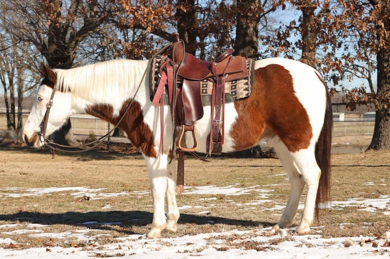 ONLINE AUCTION Place your bids at www.PlatinumEquineAuction.com Starting Bid $3500 Auction ends February 3rd, 2025 Need a new saddle? Check out White Rock Saddles on our website or Facebook! Taco is 13 years old. He stands 14 hands tall and has more color than a crayon box! Taco is a head turner wherever he goes and has been used as a play day pony in the 4-H program the last few years. Taco will go anywhere you point him and is a pleasure to be around. He will cross the logs, ditches, waters, and much more. Taco also loves attention, and is eager to please. He stands tied, loads without hesitation, stands for farrier, and loves baths. He has been around cattle, and all other farm animals. Easy to catch and will meet you at the gate. He has been more miles than most vehicles and ridden by numerous of kids and younger teenagers. Taco has been a great asset to our barn. He has been in multiple parades and grand entry’s including a very large Christmas parade in Oklahoma the last 4 years. Taco has been rode in the arena, will walk, trot, and lope with ease! Absolutely nothing phases him at all. Taco would make a great youth pony or even big enough for an adult! He has lots of life left in him and goes wherever you point him! He is absolutely gentle, honest, quiet and reliable! Shipping is available anywhere in the US also Canada, Mexico, and Hawaii! Located in Sallisaw, OK. Contact TG Livestock Co. Taylor 918-712-0905. ONLINE AUCTION Place your bids at www.PlatinumEquineAuction.com Starting Bid $3500 Auction ends February 3rd, 2025 Need a new saddle? Check out White Rock Saddles on our website or Facebook!