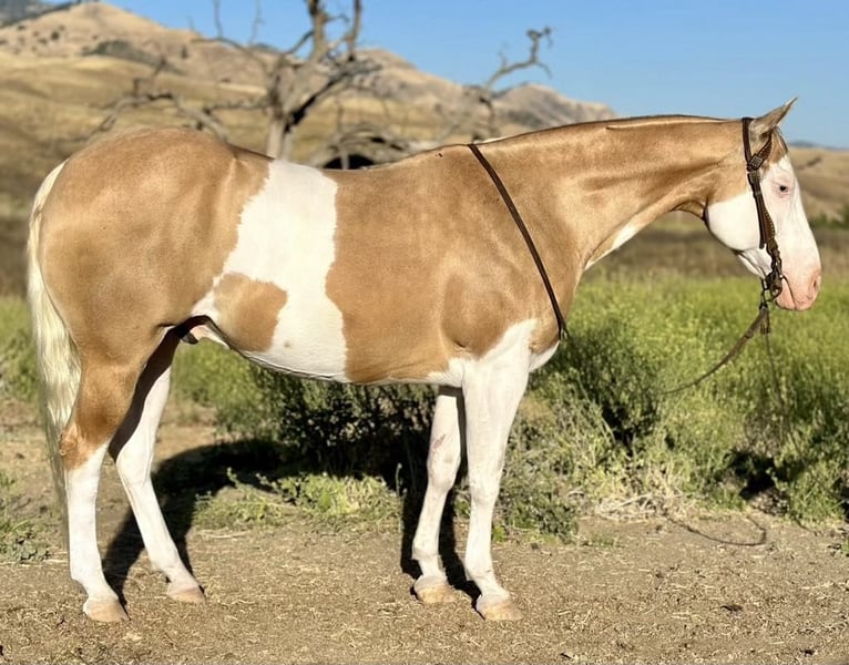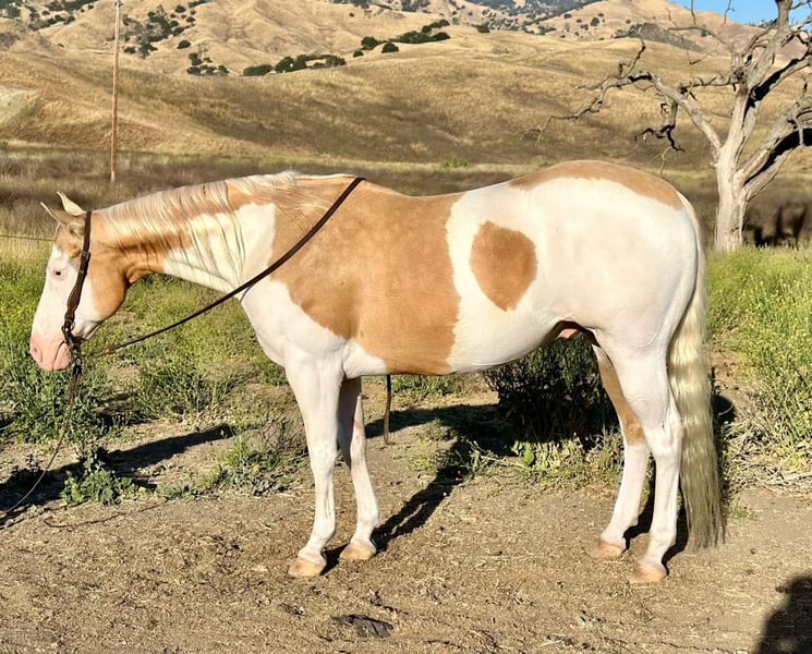 ONLINE AUCTION PLACE YOUR BIDS AT PLATINUMEQUINEAUCTION DOT COM $3500 STARTING BID AUCTION ENDS JUNE 30TH We are proud to introduce this beautiful palomino paint gelding. He is 11 years old,14.3 hands tall and picture perfect. Dice has everything you could want all in one package. Dice rides like one should low headed collected and very correct. Dice is a friendly, easy horse and is accommodating for all level riders. He is absolutely safe and knowledgeable horse and will adapt for his riders ability. He is luxurious, comfortable and stylish! He has a resume a mile long from every day ranch duties, to rodeos, head horse, family horse, sensible trail companion you name it he will do it. Dice is super broke spins, slides and has elegant transitions in his gaits. He has had natural horsemanship training and is very soft and supple on the ground as well as on his back. He gives off pressure very well he will flex both directions and at the poll. He is the kind of horse you can trust! He will run a cow down, then turn around put the kids on him and he will slow walk all day long he is the most versatile horse you will ever be lucky enough to swing your leg over. He is absolutely gentle. Dice side passes, pivots and has a rocking chair lope you can sit for days. He is good to catch great for the farrier, loads and unloads with ease, stands tied, easy to saddle and bridle. Dice has gathered cattle in steep country and will cross anything you may come across, brush, downed trees and cross the deepest water. Dice is amazing on the trail and just puts his head down and goes with the flow. He has been in some ranch trail and goes over the teetering bridge, over the tires, logs, covered wagon with ease and confidence. He has been rode down busy streets, carried flags and doesn’t mind tarps or balls whatsoever. Dice will fit the everyday cowboy or the leisurely trial rider. Due to his gentle demeanor he will fit a family that needs a horse that different abilities can ride. Dice is a very easy going gelding that makes him such a pleasure to have around. He is at the prime of his life and has so much knowledge it is truly priceless. Dice has absolutely no vices he is solid sane and an a very intelligent horse. We have truly enjoyed every minute of owning this beautiful gelding and he will be greatly missed. We know he will be the absolute barn favorite wherever he goes. He has a friendly disposition and will steal your heart. Please feel free to call and make an appointment to come meet him or with any questions you may have contact Longhorn Ranch Dina 831-537-1915 Located in Paicines Ca