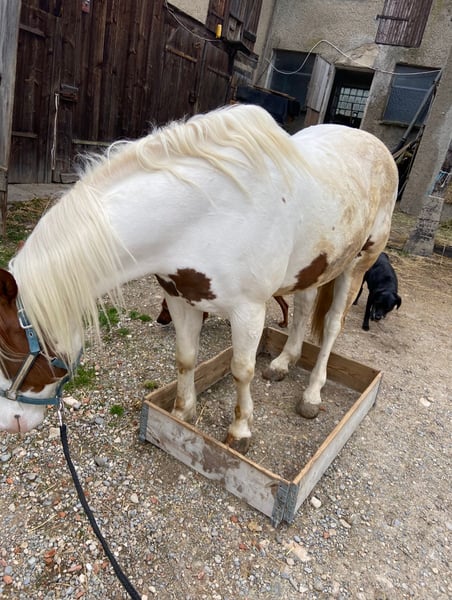 Zum Verkauf steht mein 13 Jähriger Wallach. Maik wurde bei uns in der Bauernhofpädagogik eingesetzt ist ca.149cm groß und ist ein absoluter Schatz im Umgang. Er ist schmiede und verladefromm, kennt Hunde, Kühe, Traktoren und alles was dazu gehört. Er ist sehr entspannt, egal ob er von vielen Kinderhänden geputzt wird, neben ihm ein Maisfeld abgeerntet wird oder er einen Festumzug laufen soll, er ist dabei. Vor drei Jahren hatte er eine Hufgelenksentzündung, die damals komplett ausgeheilt ist, leider läuft er seither unter Belastung nicht taktrein. Solange er auf der Koppel ist oder nur selten geritten wird, ist alles in Ordnung. Er würde sich gut für Kinder oder eine Leichte Reiterin/ einen leiten Reiter oder jemand der ohnehin nicht oft zum reiten kommt eignen. Maik steht bei uns ganzjährig auf der Koppel und ist sehr robust. Einmal im Jahr kommt der Zahnarzt, da macht er auch immer gut mit. Bei Fragen darf sich gerne gemeldet werden.