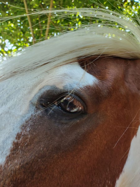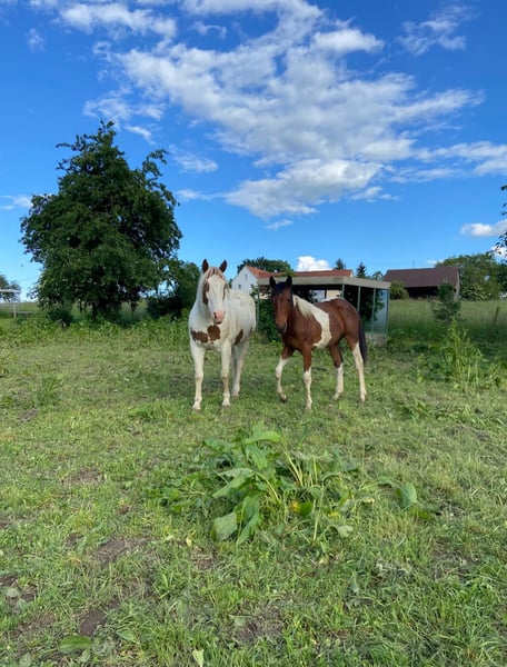 For sale is my 13-year-old gelding. Maik has been used in our farm-based educational program and stands approximately 14.9 hands high. He is an absolute sweetheart to handle. He is farrier- and loading-friendly, knows dogs, cows, tractors, and everything that comes with farm life. He is very relaxed—whether he's being groomed by many children, has a cornfield harvested beside him, or is participating in a parade, he is always calm and willing. Three years ago, he had a joint inflammation in his hock, which fully healed at the time. Unfortunately, since then, he has not moved perfectly in trot under load. As long as he is on pasture or ridden only occasionally, everything is fine. He would be well suited for children, a light rider, or someone who doesn't ride often. Maik is kept on pasture year-round and is very hardy. Once a year, the veterinarian comes for dental care, which he always handles well. Please feel free to contact us with any questions.