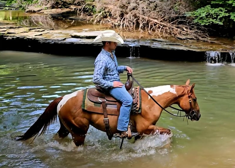 ♦️ 𝐭𝐡𝐞 𝐒𝐞𝐩𝐭𝐞𝐦𝐛𝐞𝐫 𝑺𝒆𝒍𝒆𝒄𝒕 ♦️ Happening now thru MONDAY | SEPTEMBER 8th - Available EXCLUSIVELY on HorseBid's website! For more details and to register visit: www.Horsebid.com CONSIGNOR CONTACT: S&T Livestock 270-844-2400 LOCATION: Henderson, KY BREED: Paint REGISTERED: No COLOR: Paint HEIGHT: 14 AGE: 2 GENDER: Gelding What a fancy well started 2yr old paint gelding. Toby is 14hands tall and sells grade because of his mother, he is an own son of metallic pirate who is a son of metallic cat really great blood lines on this cow bred colt. Toby has had 3 months of professional training with a great start on planting and turning correctly and really picking up his lead departure, as well as roll backs on the fence. He picks up both leads, side passes and has a good stop. You can swing a rope off him as well. Toby has been trail rode extensively and will cross creeks, go through any body type of water, thick brush, logs, bridges, rough terrain and up and down cliffs. He is not spooky. Toby has been rode by intermediate kids on the trails and does great with no fuss. He stands tied good to be saddled, farrier, baths, grooming and to get on. He will load and unload with ease. Toby is a very calm 2yr old with an easy going nature. He has never bucked from day 1 of starting him. It will be hard to find a 2yr old this mature for the time spent on him. Take him any direction you want and with his bloodlines he will make one heck of an easy going cow horse. We invite anyone and everyone to come meet and ride Toby at our barn in Henderson, Kentucky. We are happy to assist with transportation arrangements. For any questions about Toby please call or text Tasha (Agent) 270-844-2400