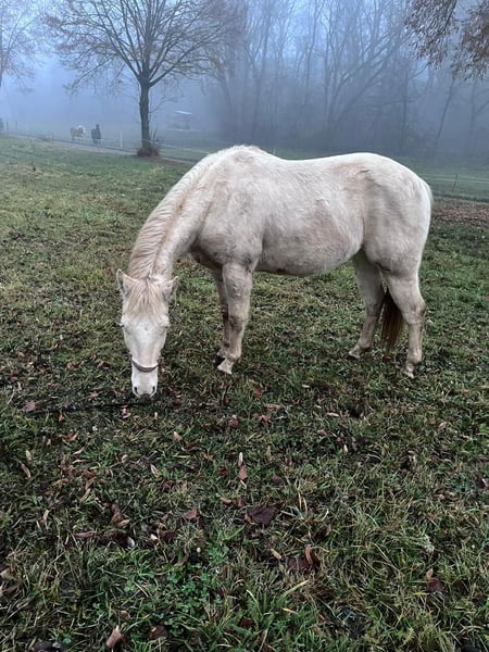 Jack Pine Forever - ein gesunder, gut gebauter Paint Horse Wallach, geboren am 31. März 2023, in einer seltenen smoky cream solid Farbe mit zwei strahlend blauen Augen - ein echter Hingucker! Mit einem aktuellen Stockmaß von ca. 147cm zeigt er sich harmonisch bemuskelt, robust und bestens proportioniert. Sein Charakter macht ihn zu etwas ganz Besonderem: zutraulich, verschmust und menschenbezogen, zeigt er sich von Anfang an freundlich und lernwillig. Im Umgang ist er brav, unkompliziert und aufmerksam, kennt Tierarzt- und Hufschmiedbesuche, ist regelmäßig entwurmt und mit Offenstall- sowie Weidehaltung bestens vertraut. Jack Pine Forever bringt bereits das Fohlen-ABC mit und wird vorsichtig anlongiert, wodurch er sich ideal als Jungpferd zum Selberausbilden eignet. Seine solide Allround-Abstammung, 5-Panel n/n über die Eltern und volle Paint Horse Papiere machen ihn zu einem vielseitigen Freizeitpartner, der später in vielen Bereichen Freude bereiten wird. Dieses coole Jungpferd verbindet Gesundheit, Charakter und Schönheit - perfekt für alle, die ein zuverlässiges, lernwilliges und auffälliges Pferd suchen. Jack Pine Forever wartet darauf, gemeinsam mit seinem neuen Menschen zu wachsen und zu glänzen!