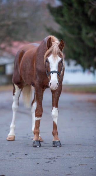 Benji ist ein bildhübsche Wallach. Leider hat er in seinen jungen Jahren schon einiges erlebt. Er zeigt ein sehr dominantes Verhalten gegenüber dem Menschen. Da er schlechte Erfahrungen mit Menschen gemacht hat, arbeite ich gerade nur am Boden. Er ist in keinsterweise schreckhaft, geht überall hin und auch alleine ins Gelände. Er wird nur an erfahrene Menschen mit schwierigen Pferden abgegeben und wer wirklich ernsthaftes Interesse an Benji hat, kann sich gerne telefonisch melden, denn es gibt einiges vor einem Besuch zu erzählen. Hier gilt für mich, der Mensch muss passen und der Preis ist zweitrangig.