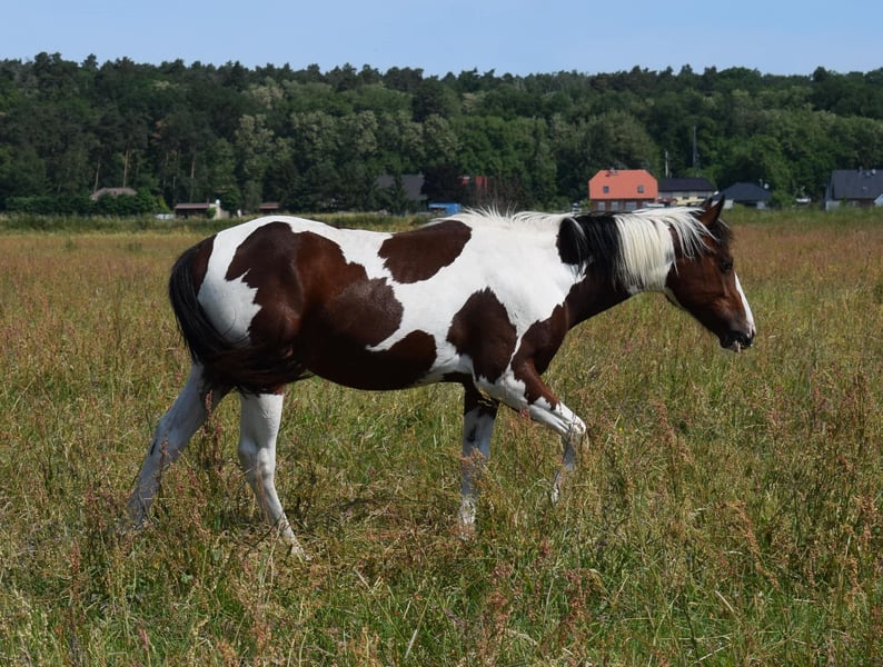 **Sales Advertisement: Paint Horse Gelding** For sale is a beautiful Paint Horse gelding from the year 2022. **Features:** - Breed: American Paint Horse - Gender: Gelding - Year of Birth: 2022 - Color: Bay Tobiano - Height: 1.50 m Smoke impresses with his friendly nature and his really beautiful markings. He is ideally suited for recreational riders looking for a versatile partner. Smoke has grown up in a herd environment on large pastures with us. He is well-mannered, knows the basics of groundwork, and is ready to be further trained. If you are interested or need more information, please feel free to contact me. Viewings are possible by appointment.