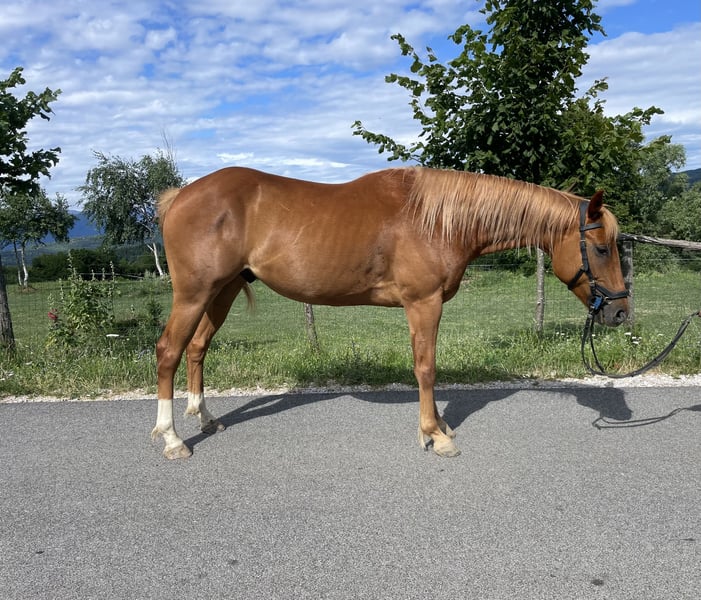 Suchen Sie ein vertrauenswürdiges, sanftes und vielseitiges Pferd? Wir präsentieren Ihnen APHA – Choko Imprinted Bars – einen 4-jährigen, 153 cm großen Wallach, ideal für Familien, Sport und Freizeitreiten. 🐎 Alter: 4 Jahre 🐎 Größe: 153 cm (am Widerrist) 🐎 Abstammung: VATER Jack Quincy Bars, MUTTER An Imprinted Sapphire 🐎 Barfuß 🐎 Außergewöhnlich ruhiger und sanfter Charakter 🐎 Western ausgebildet, sicher im Gelände – sowohl allein als auch in Gesellschaft 🐎 Bombensicher, erfahren im Umgang mit Kindern – das perfekte Familienpferd 🐎 Geeignet für westernmäßige Disziplinen (Western Pleasure usw.) oder zur Freizeitnutzung 🐎 Einfach zu verladen und zu transportieren 💰 Preis: 5.800 € Wenn Sie einen zuverlässigen und liebevollen Partner zum Reiten und für Gesellschaft suchen, ist Choko der Richtige für Sie! 📱 +386 51 270 118 – Dejan 📩 Für weitere Informationen oder um einen Besichtigungstermin zu vereinbaren, rufen Sie an oder senden Sie eine Nachricht! 📍 Standort: DS Camping – Banjsice