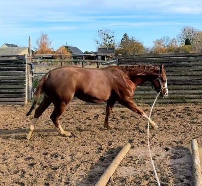 Nur wegen Bestandsverkleinerung: Sehr lieber junger Painthorse Wallach mit bestem Papier, von Smart Like Custom NRHA Non Pro Derbysieger, Mutter ebenfalls mit Showerfolgen, bestens geritten und gefördert in Ranchriding und Allaround, EWU JuPf, geht alleine ins Gelände, mit allerbestem Charakter. Gerne in ein förderndes Zuhause, passend für Jugendliche. Wegen altem Rö Befund ( Fohlenspat hinten links) unter Wert zu verkaufen, Rö Bilder von 05/25 liegen vor, im Training bei Lena Wolff Performance Horses