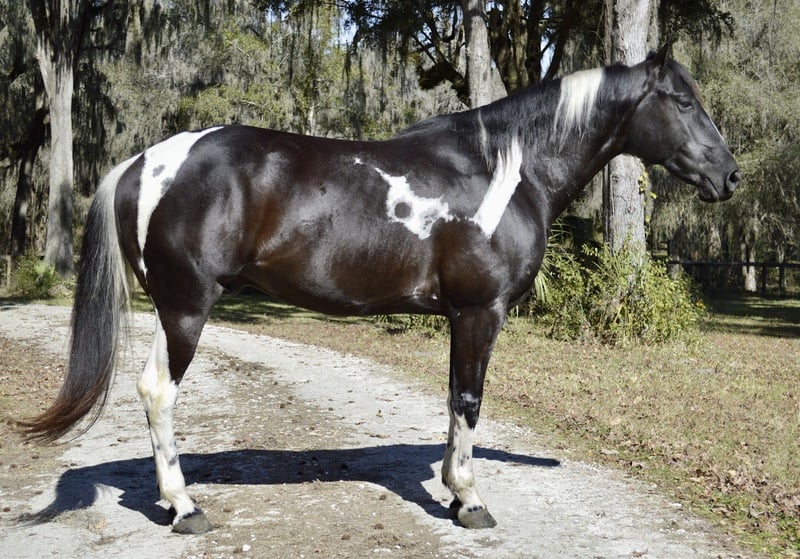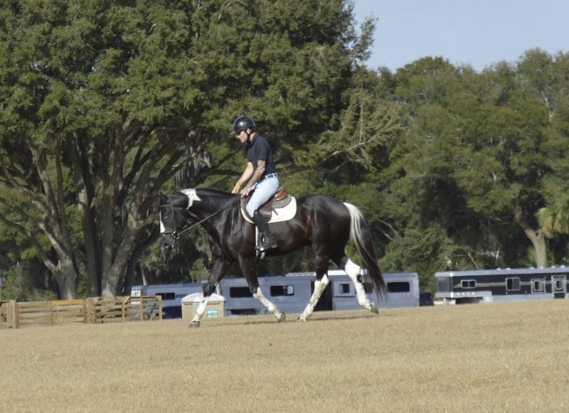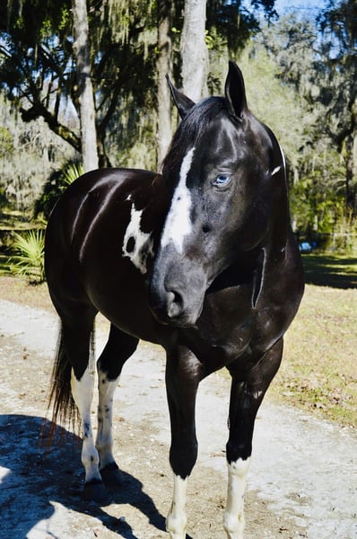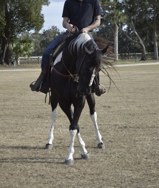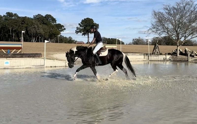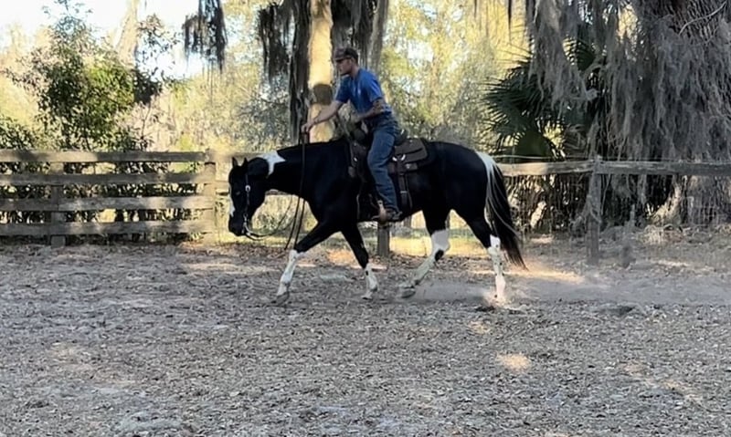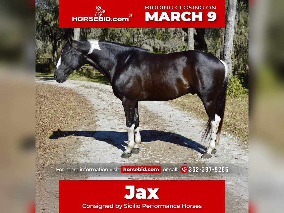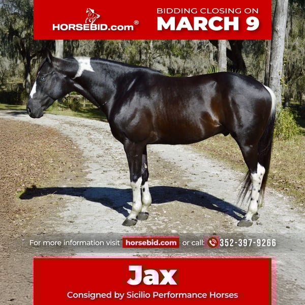 ℳ𝒶𝓇𝒸𝒽 ♦️𝐑𝐈𝐃𝐄𝐑'𝐒 𝐂𝐇𝐎𝐈𝐂𝐄♦️ Happening now thru MONDAY | MARCH 9th - Available EXCLUSIVELY on HorseBid's website! For more details and to register visit: www.Horsebid.com CONSIGNOR CONTACT: Sicilio Performance Horses 352-397-9266 LOCATION: Micanopy, FL BREED: APHA REGISTERED: Yes REGISTERED NAME: SKIPIN QTS BLUE CHIP COLOR: Black and white HEIGHT: 15.2 AGE: 5 GENDER: Gelding 2021 APHA & PTHA Tobiano Gelding | 15.2 hh SKIPIN QTS BLUE CHIP Jax is a quiet, sensible 15.2-hand gelding with a solid foundation and experience in multiple disciplines. He has been shown in Ranch Riding and is currently being schooled in lower-level dressage and eventing, making him a great option for someone looking for a versatile horse with a good brain. He is more woah than go and is a comfortable, confidence-building ride. Jax is steady, uncomplicated, and enjoys his job. He trail rides great, both alone and in company, and handles new environments with ease. He is not reactive or rushy and prefers a calm, consistent ride. Jax is currently coursing around 2’3” with confidence and continues to progress in his jumping work. He would be well suited to continue in ranch riding, develop further in dressage or eventing, or be enjoyed as a quality all-around partner. His quiet nature makes him best suited for an intermediate rider who wants a sensible, honest horse that is easy to live with and doesn’t require a constant push.