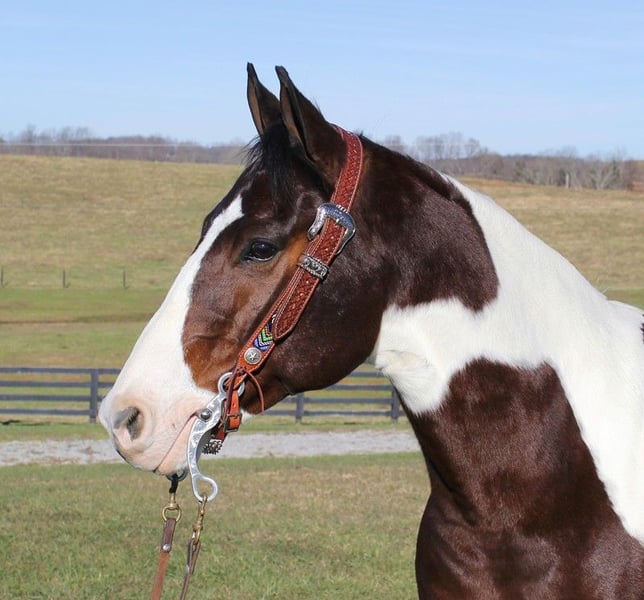 Alamo is a 15.1hh, 9 yr old, stout built, Bay Tobiano Paint Quarter horse gelding. He is a big stout built horse that weighs around 1200lbs and will carry any size rider. Alamo was born and raised in South Texas and he has been used in all aspects of ranch work from roping to sorting. Alamo has been trail ridden in multiple states throughout the west including Texas, New Mexico, Oklahoma, Wyoming, Montana and he has saw everything possible on the trails or ranch. He is a using horse and not a pet although he will follow you around like a dog if he knows you. He will cross creeks, ditches, logs and navigate rough rocky areas. He is safe riding in traffic whether that be semi-trucks or cars. He has a smooth jog, his lope is slow and easy as well, he stops nicely, will back and sidepass! You can lope him around or even put him in a full gallop and he will calm right back down and walk quietly as soon as he is asked. Alamo rides fine and would be good for most beginners to ride. He has been exposed to all kinds of wildlife such as deer or turkey or other animals like cows or dogs and will go anywhere that he is asked too. He has been rode many miles in the mountains of Eastern Kentucky and encountered every obstacle possible on the trail. He will go up or down even the steepest slopes, across deep creeks, over downed trees, and over all types of rough terrain while still being sure footed. Alamo is not cinchy, cold backed, does not crib or weave. Alamo is a big stylish looking gelding that rides the right way so anyone should enjoy him! Feel free to call +13039908552 with any questions!