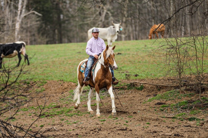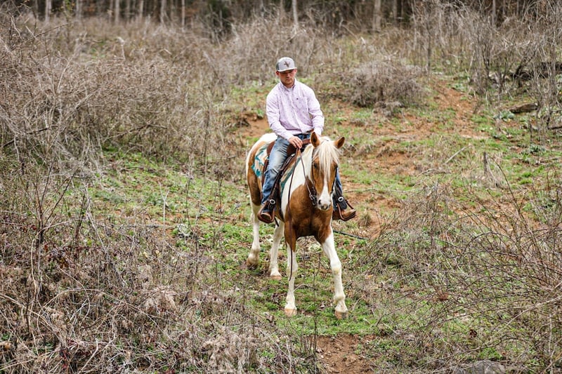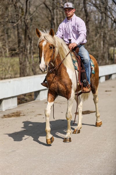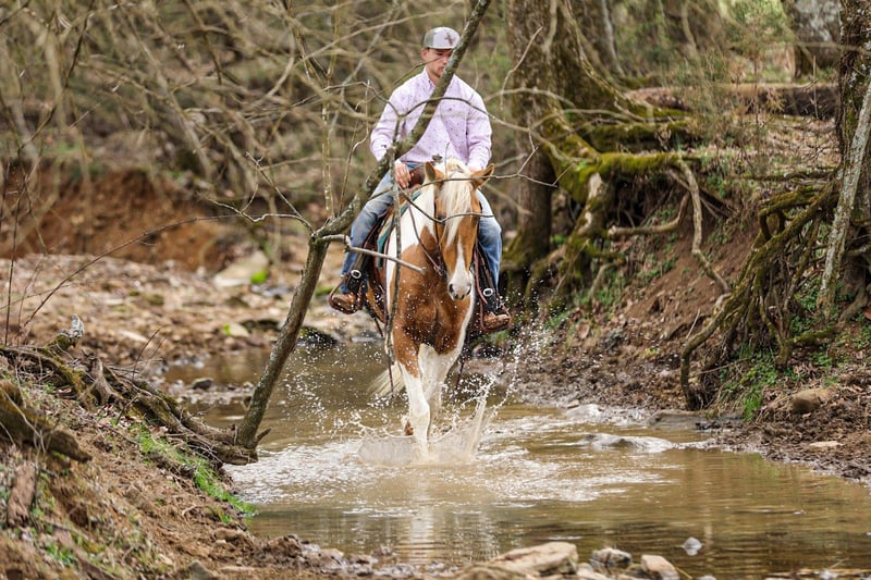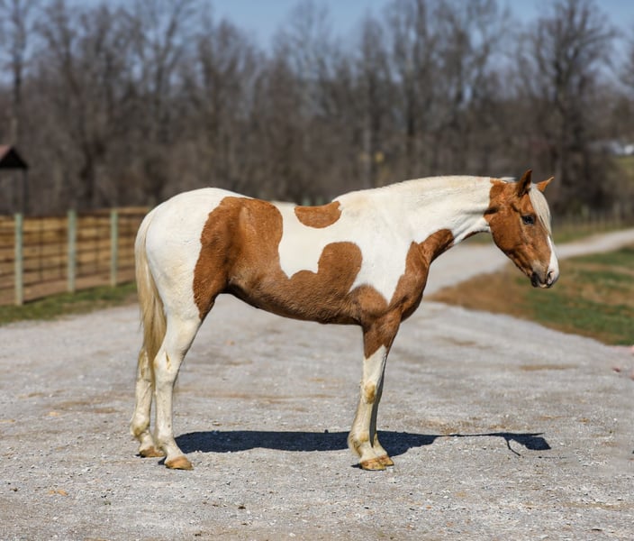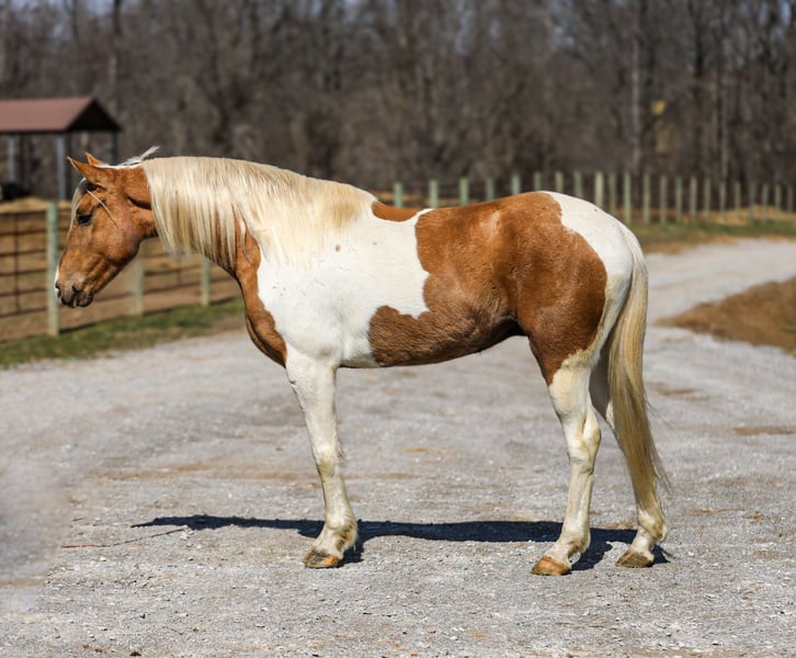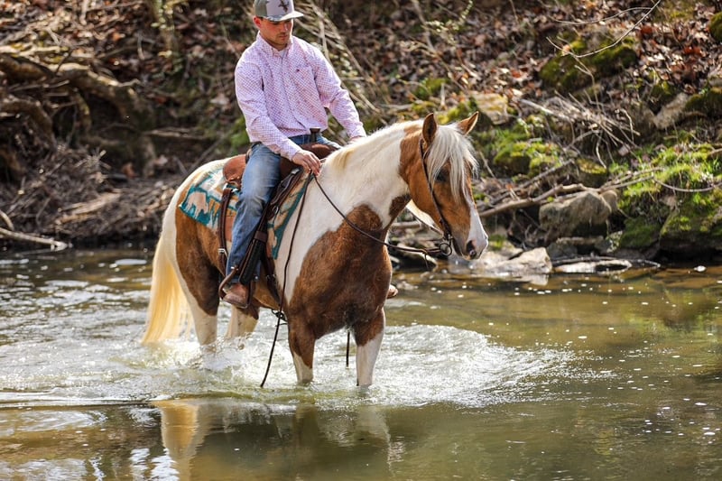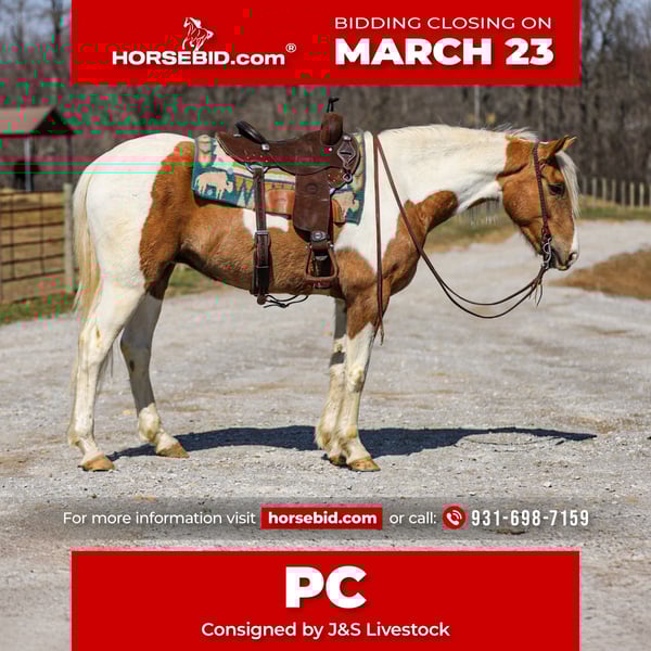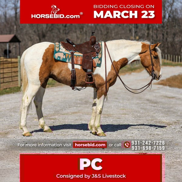 ⚜️𝓽𝓱𝓮 𝐆𝐎𝐋𝐃 𝓢𝓮𝓵𝓮𝓬𝓽⚜️ Happening now thru MONDAY | MARCH 23rd - Available EXCLUSIVELY on HorseBid's website! For more details and to register visit: www.Horsebid.com CONSIGNOR CONTACT: J&S Livestock 931-698-7159 or 931-242-7226 LOCATION: Santa Fe, TN BREED: Paint REGISTERED: No REGISTERED NAME: PC COLOR: Palomino and white HEIGHT: 15.1 AGE: 6 GENDER: Gelding PC, a stunning yet classy palomino and white gelding standing 15.1 hands tall and 6-years-old. This gelding is what trail dreams are made of and is the total trail horse deluxe package. If you are looking for something safe, steady, and reliable to take on a nice quiet trail ride to what might turn into even the roughest, sketchiest trails- without hesitation PC will be your guy. He will wade through the creeks, cross over logs, and take you up or down some pretty steep ground, while doing it slowly and safely. He has such a puppy-dog personality, so sweet and kind. He loves attention and will meet you at the gate every-time to be petted on, which makes him pretty darn easy to catch, as well. He will ride out alone, or in a group. He does good with noisy traffic, deer running through the woods, and riding through cattle. To say the least, exposure is something this guy has covered- making him an easy mount to enjoy and have fun on, while being able to feel safe, comfortable, and confident. Pc saddles great, trailers nicely, is good for the farrier, and enjoys getting bathed. He has quiet manners and would be easy for anyone to get along with. He is 100% sound and has a recent PPE. For any further information or questions please feel free to reach out. Bailey 931-242-7226 or JT 931-698-7159.