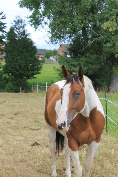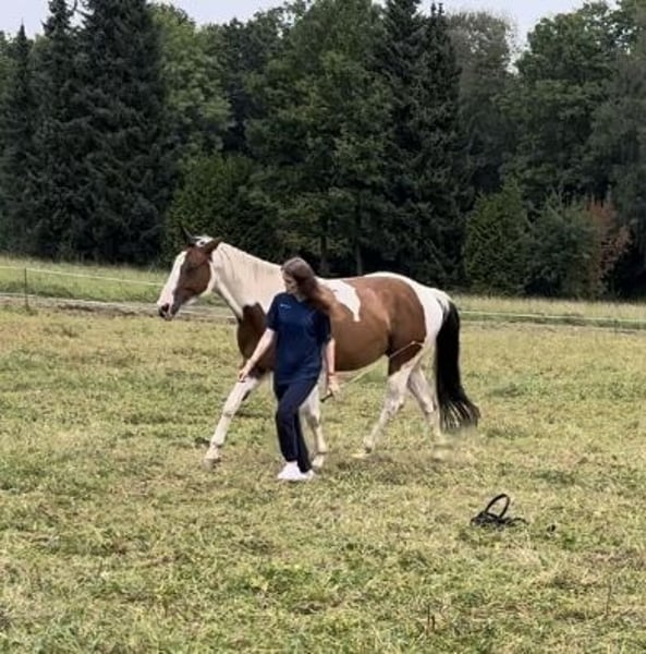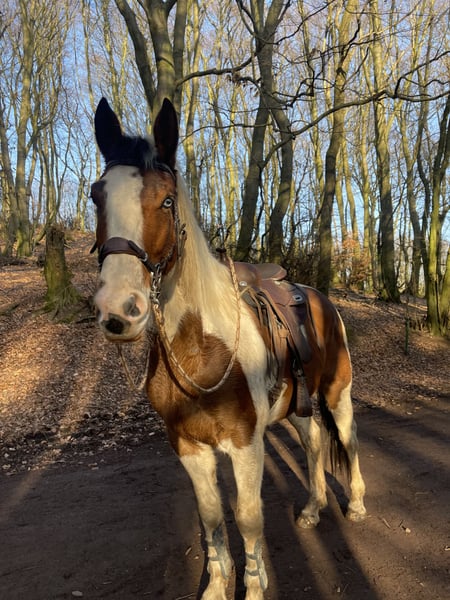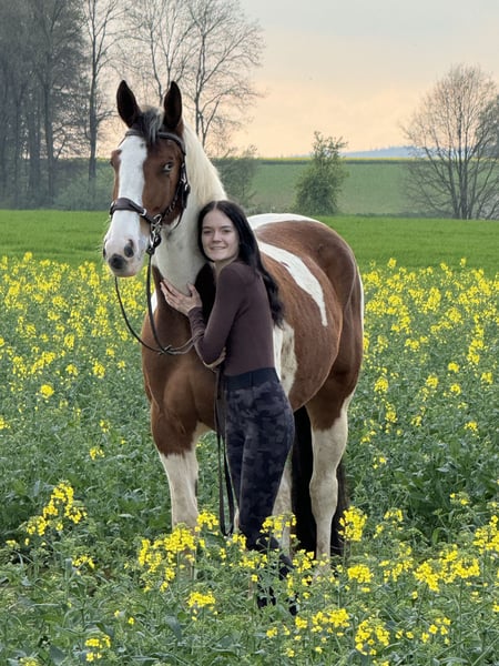 Biete Paint Horse Mix Wallach geb Juni 2020 zum Verkauf an. Er ist um die 1,65 m groß Er wird mit Zubehör verkauft. Er ist kein reines Anfänger Pferd da er bis jetzt nur angeritten ist und das auch nur Gebisslos. Er geht auch ins Gelände allein oder in einer Gruppe wurde allerdings länger nicht gearbeitet. Er hat keine Angst vor Hunden ,Trecker, Kinder oder sonstigen. Er geht auf den Hänger braucht aber viel Überzeugung. Er hat durch einen Unfall im offenstall einen Schönheitsfehler an der Nase , aber es beeinträchtigt ihn nicht! Am besten für ihn ist auch eine Wallach Herde , da es für ihn deutlich angenehmer ist. Mylo hat eine Diagnose , die ihm soweit aber nicht einschränkt darf ganz normal bewegt werden und ist Symptome frei, bitte erwartet nicht, dass ihr bei dem günstigen Preis ein kerngesundes Pferd bekommt. Dazu aber privat mehr. Wer interessiert ist und mir schreibt bekommt weitere Informationen über ihn. Mir ist wichtig das er ein schönes Zuhause findet! Bitte auch keine Händler , schulbetriebe oder sonstiges in der Art! Ich möchte für ihn ein festes Zuhause :) Wenn es auch passt , kann er auch schon direkt mit ausziehen.