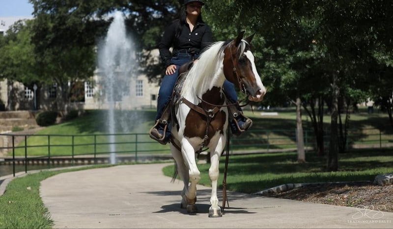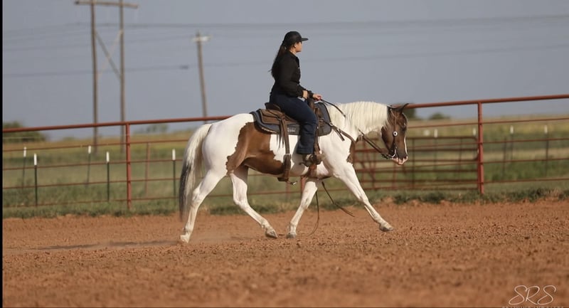ONLINE AUCTION Place your bids at www.PlatinumEquineAuction.com Starting Bid $3500 Auction ends August 4th, 2024 Need a new saddle? Check out White Rock Saddles on our website or Facebook! EKPD Sand Peppy Doc aka “Scout” is a 2017 Registered Paint gelding standing at 15 hands. Scout is a a kind and gentle gelding who is willing to go all day long. He has lots of energy and makes a great using horse. Scout is willing to go through any obstacle you put in his way whether it’s flags, banners, tarps, water, lawn sprinklers and fountains, he is always ready to do what you ask when you ask it. I have used Scout to gather cattle, check fences, pony colts, trail ride, and he has always been a great companion. He rides in an arena and outside whether it’s by himself or in a group. I often take him out to check fences bareback in a hackamore and him and I both have the best time! He walk, trot and lopes both leads very easily off your leg cues. He mostly neck reins but will also listen to direct rein. Scout listens phenomenally to leg cues, he will turn around both directions and side pass left and right with ease making opening and closing gates off him a breeze. Scout is ready to be a using horse or could be finished to be one of the prettiest in the arena for gymkhanas, ranch rodeo, and ropings. He has an adorable gelding personality with excellent ground manners. He ties nicely in the barn or at the trailer to be groomed, saddled, and bathed. He hops on the trailer with ease and backs off very nicely. Scout can be outside in a pasture alone or with other horses, he also does well in a stall. He has recently been seen by my vet, farrier, dentist and chiropractor and was an excellent citizen for them all. Scout is an excellent horse that is always ready to work and be pointed in the next direction by his rider. For more information or questions please contact Sydney with SRS Training and Sales at (518) 935-8282. Scout is located in Granbury, TX. If you love Scout and are not local I am happy to help arrange shipping options that are quick and affordable all across the U.S. ONLINE AUCTION Place your bids at www.PlatinumEquineAuction.com Starting Bid $3500 Auction ends August 4th, 2024 Need a new saddle? Check out White Rock Saddles on our website or Facebook!