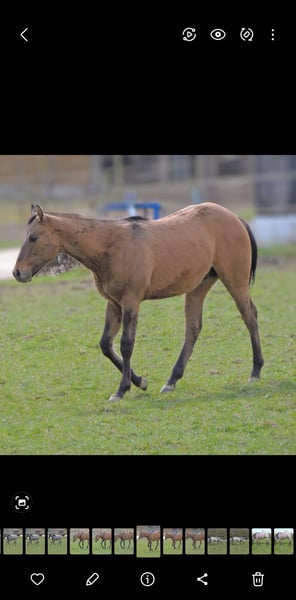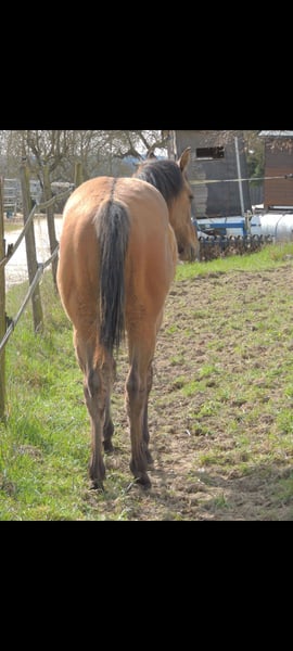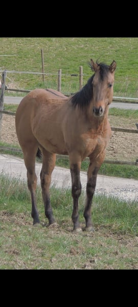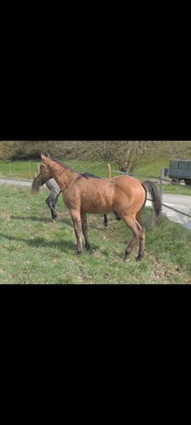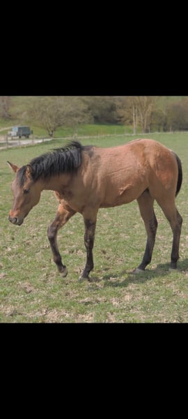 QH Fohlen geboren am 6.3.2025 ! Zur Zeit ist er 146cm groß und das Endmaß liegt ca bei 156-158 cm ! Regelmäßige Wurmkuren , Impfungen und Hufschmied sind selbstverständlich ! AQHA Papiere liegen vor ! Die Fotos sind aktuell , aber er hat noch nicht das eigentliche Sommerfell ! Er wächst im Herdenverband auf und steht in großen Laufboxen wo er immer Zugang zu Heu hat ! AQHA Papiere liegen vor . Er sind 6 Penel getestet mit N/N