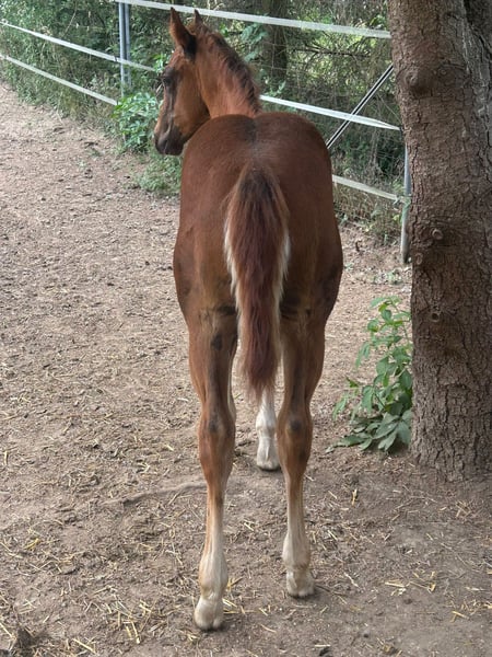 American Quarter Horse Stallion – Dark Chestnut, foaled 2025 For sale is a promising American Quarter Horse stallion, born in 2025. Little Ferdinand presents in an elegant dark chestnut color and is expected to reach an approximate height of 15.0 hh. He has a solid foundation and an excellent temperament; he is easy to handle and always eager to please. The stallion already shows good potential in reining. With his friendly nature and steady temperament, he is suitable for both experienced riders and ambitious young talents. Please feel free to contact me for more information or if you are interested. Viewings can be arranged by appointment.