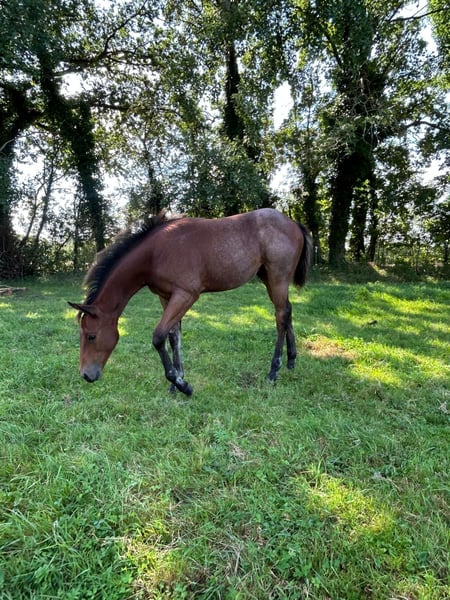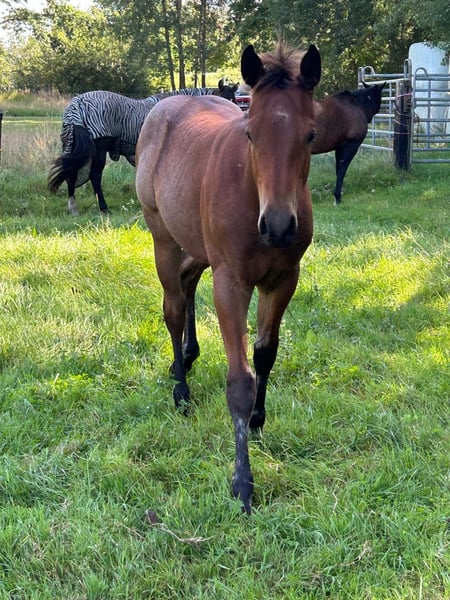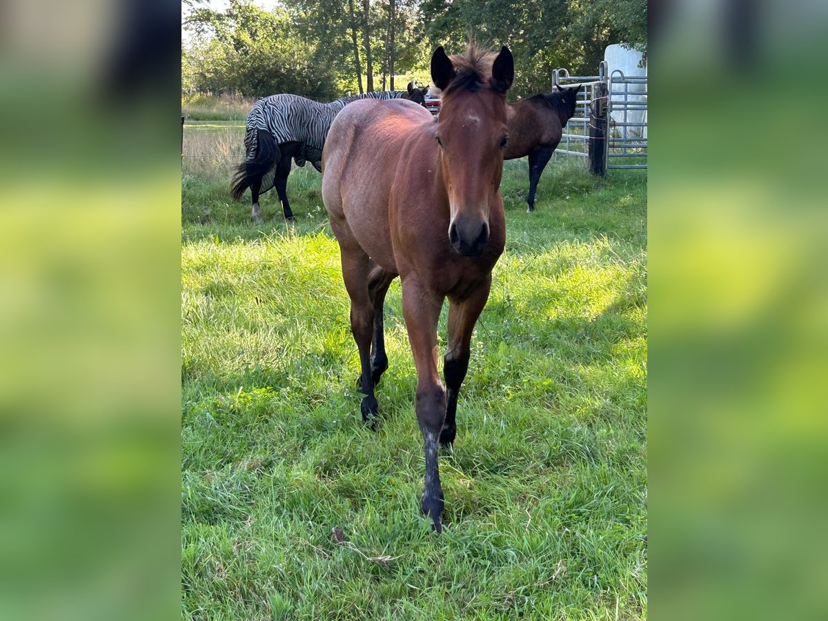 Dieser tolle und äußerst hübsche Bay Roan Hengst, geboren am 24.04.2025, sucht ab November ein 5-Sterne-Zuhause. Er wächst mit viel Platz auf und wird täglich gehändelt. Halfter, Hufe geben und später auch das Verladen auf den Anhänger werden selbstverständlich regelmäßig geübt. Bei Abgabe besitzt er sein AQHA-Papier sowie einen Equidenpass. Er ist natürlich mehrfach entwurmt und regelmäßig dem Schmied vorgestellt. Abgabe ist ab Anfang November möglich – er ist jetzt schon sehr groß und wird voraussichtlich mindestens 152 cm+ erreichen. Beide Eltern sind 5-Panel n/n getestet. Auf den letzten beiden Bildern sind Vater und Mutter zu sehen. Bitte nur bei ernsthaftem Interesse melden.