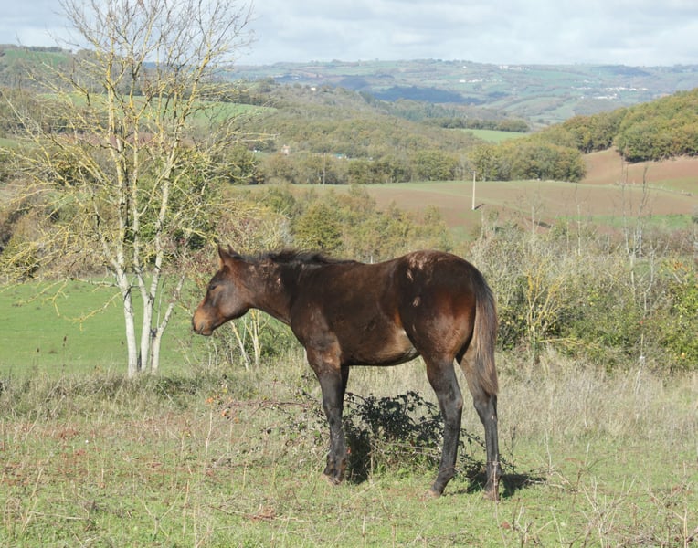 Purple Kings Danadas – Poulain Quarter Horse à vendre Né en juin 2025, Purple Kings Danadas est un superbe poulain Quarter Horse, alliant pedigree d’exception, modèle puissant et excellent mental. Il est le fils de King Blythe 49, étalon d’origine ranch importé des États-Unis, reconnu pour transmettre rusticité, mental froid et aptitudes polyvalentes. Il présente notamment 49 % de sang de King P-234, étalon fondateur emblématique de la race Quarter Horse, célèbre pour avoir transmis solidité, intelligence et un sens du bétail hors pair. Sa mère, FG Shining Surprise, est une jument au modèle impressionnant avec un très gros gabarit, apportant puissance, ossature et présence. Son pedigree met en avant plusieurs grands étalons reconnus comme Shining Spark, Peppy San Badger ou High Brow Hickory 👉 Caractéristiques : • Nom : Purple Kings Danadas • Robe : Seal Brown • 92 % NFQHA (gros pourcentage de sang fondation) • Taille estimée : environ 1m55 • Modèle : beaucoup de masse, osseux, harmonieux • Poulain avec du sang, tout en restant posé et réfléchi • 👉 Manipulation & soins : Purple Kings Danadas est un poulain bien manipulé : travail en main de base acquis, donne les pieds, habitué au pansage et à la présence humaine. 👉 Santé : Il est à jour de : • Vermifuge • Parage • Ostéopathie • Vaccins Testé négatif sur les 7 panels génétiques 👉 Mode de vie : Élevé dans des conditions idéales, il vit en troupeau avec juments, poulains et étalon, ce qui lui assure un excellent équilibre mental et social. 👉 Statut : Actuellement entier, il pourra être castré sur demande. Un poulain prometteur, alliant génétique solide, modèle puissant et mental sain, idéal pour un projet polyvalent ranch, comme futur reproducteur ou loisir de qualité. Prix : 7 5 🥕🥕 Domaine de Danadas Bucels 12480 Saint Izaire Notre sélection pour l’élevage de Quarter Horses s’inscrit dans une recherche constante de chevaux rustiques, sains et fonctionnels, élevés dans des conditions respectueuses de leur bien-être. Élevage professionnel, nous accordons une attention particulière à la qualité de vie de nos animaux : nos juments vivent au pré toute l’année, sur de grandes parcelles avec des abris naturels, et sont complémentées en foin bio lorsque nécessaire ainsi qu’avec un CMV de qualité. Nous privilégions des chevaux aux pieds solides et fonctionnels, capables de durer dans le temps. Au-delà du modèle, nous recherchons avant tout la disponibilité au travail, la rusticité et la facilité au quotidien : des chevaux fiables, aussi bien pour une balade dominicale que pour un week-end en compétition ou le travail au troupeau sur nos 130 hectares. Notre programme s’appuie sur des lignées « foundation », avec des origines autour du légendaire King P-234 et de Blackburn , reconnues pour leur mental, leur robustesse et leur fonctionnalité. Nos poulains grandissent dans le respect de leur nature : ils vivent en troupeau, aux côtés des juments, des autres poulains et de l’étalon, favorisant ainsi un développement physique et mental équilibré. Ils bénéficient d’un suivi complet (ostéopathie, shiatsu énergétique, parage, suivi vétérinaire, vermifugation et nutrition) et nous leur inculquons les bases d’éducation à leur rythme, en douceur. Nous pratiquons des sevrages tardifs, généralement entre 10 et 12 mois, afin de préserver leur équilibre. À travers cette approche globale et rigoureuse, notre objectif est de produire des poulains faciles, solides, rustiques et bien dans leur tête, capables de s’adapter durablement aux exigences du travail comme à celles du quotidien