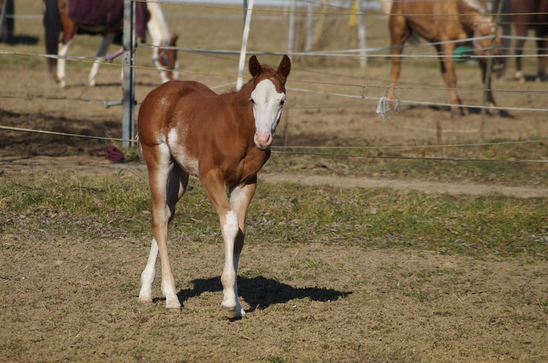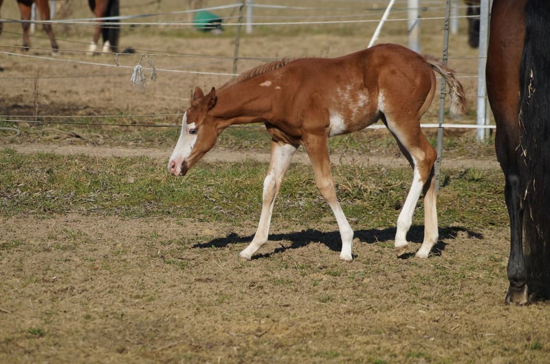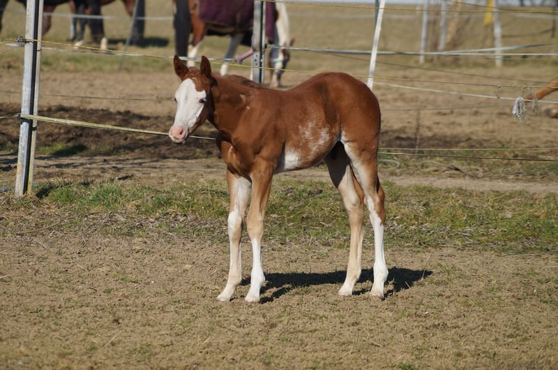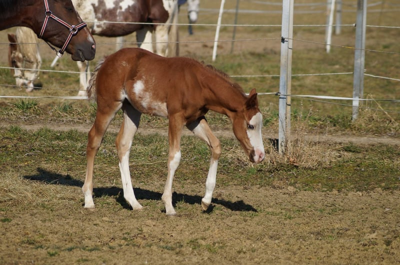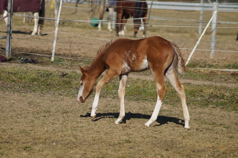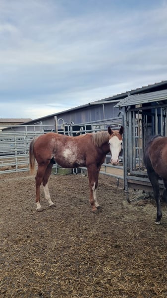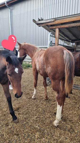 AM Timeless - ein außergewöhnlich typvoller Quarter Horse / Paint Horse Hengst, geboren am 28. Januar 2025. Mit seiner wunderschönen sorrel/sorrel overo Farbe und seinem harmonischen, korrekt gebauten Körper ist er ein echter Eyecatcher. Braxton wird voraussichtlich ein Endmaß von etwa 157-160 cm erreichen und bringt eine hervorragende Bemuskelung mit, sodass er später auch größere Reiter gut abdecken wird. Der junge Hengst ist doppelt registriert, sowohl bei der AQHA als auch bei der APHA, und die Papiere liegen bereits vor. Er ist 5-Panel n/n getestet, selbstverständlich gesund, regelmäßig entwurmt, altersgerecht geimpft und kennt den Tierarzt sowie den Hufschmied. AM Timeless wächst artgerecht im Herdenverband auf und zeigt sich dabei sehr sozial und ausgeglichen. Charakterlich ist er ein echtes Goldstück - menschenbezogen, verschmust und cool im Umgang. Er kennt das Fohlen-ABC, ist halfterführig, gibt brav die Hufe und lässt sich problemlos putzen. Mit seinem angenehmen Temperament, seiner schnellen Auffassungsgabe und seiner Lernfreude bringt er die besten Voraussetzungen für eine erfolgreiche Ausbildung mit. Auch unter sportlichen Gesichtspunkten lässt AM Timeless keine Wünsche offen. Seine überragenden Grundgangarten und seine geniale Pleasure-/Allround-Abstammung machen ihn zu einem vielversprechenden Nachwuchspferd für den Sport- und Turnierbereich, ebenso wie zu einem idealen Partner für den ambitionierten Freizeitreiter. Braxton ist ein Enkel von Only Krymsun und Diesel Only. Der Hengst ist zudem DQHA- und PHCG-Futurity startberechtigt. Ob als zukünftiges Showpferd oder zuverlässiger Freizeitpartner - AM Timeless vereint Qualität, Ausstrahlung und Charakter in einem beeindruckenden Gesamtpaket und ist damit ein echtes Versprechen für die Zukunft.