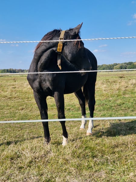 Treats N Diamonds - een prachtige jonge Quarter Horse hengst met een uitstekend fundament, stevige gewrichten en een zeer goede musculatuur. Hij toont zich nu al goed ontwikkeld en gezond. Zijn correcte lichaamsbouw, harmonieuze uitstraling en mooie kleur (zwart) maken hem tot een echte eyecatcher met toekomstpotentieel – zowel in de sport als in de recreatie. Geboren in 2024, met een eindmaat van ongeveer 152 cm. Tristan groeit op een diervriendelijke manier op in een hengstenopfok en is uitstekend gesocialiseerd. Hij is vriendelijk, nieuwsgierig, mensgericht en leergierig. Hij kent de dierenarts en de hoefsmid al, is halstert en is leeftijdsgericht gevaccineerd en ontwormd. Zijn afstamming laat geen wensen open: hij komt uit een eersteklas reininglijn en is ingeschreven bij NRHA Germany. Tristan is een zoon van One Shiney Treat, een zoon van de 10,2 miljoen dollar kostende sire Shining Spark. De moeder van One Shiney Treat, HAGANDAZ, is een Money Earning & Producing GRAYS STARLIGHT-dochter. Zij verdiende $49.289 in NCHA- en NRCHA-evenementen en bracht succesvolle prestatie-nakomelingen voort, met in totaal meer dan $65.616 (NRHA, NCHA & NRCHA). Tristans moeder, Miss Tiffany Chic, was succesvol in shows en is een Puro Chic-dochter. Tristans broers en zussen uit dezelfde moederlijn hebben zich al succesvol bewezen in de reining (open klasse). Een actuele 6-panel test is beschikbaar voor de ouders en daarnaast is er een eigen test – hij is N/N. Treats N Diamonds wordt geleverd met AQHA-papieren en paardenpaspoort. Dankzij zijn eersteklas reining-afstamming en de NRHA Germany-inschrijving staan hem alle wegen open – of het nu in de sport, op wedstrijden of als veelzijdige recreatiepartner is.