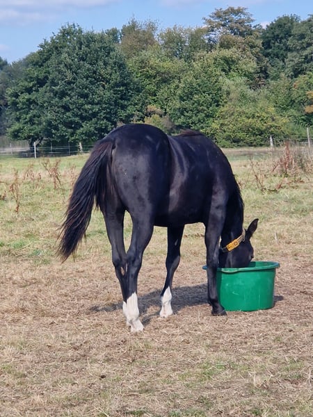 Treats N Diamonds - ein bildschöner, junger Quarter Horse Hengst mit hervorragendem Fundament, kräftigen Gelenken und sehr guter Bemuskelung. Er zeigt sich bereits jetzt weit entwickelt und gesund. Sein korrekter Körperbau, sein harmonisches Erscheinungsbild und seine tolle Farbe (black) machen ihn zu einem echten Eyecatcher mit Zukunftspotenzial - sowohl im Sport als auch im Freizeitbereich. 2024 geboren mit einem Endmaß von ca. 152 cm. Tristan wächst artgerecht in einer Hengstaufzucht auf und ist bestens sozialisiert. Er ist freundlich, neugierig, menschenbezogen und lernwillig. Tierarzt und Hufschmied kennt er bereits, ist halfterführig, altersgemäß geimpft und entwurmt. Seine Abstammung lässt keine Wünsche offen: Er entstammt einer erstklassigen Reining-Linie und ist NRHA Germany einbezahlt. Aber aufgrund seiner sehr guten Gangarten auch für Allroundklassen sehr interessant. Tristan ist ein Sohn von One Shiney Treat, ein Sohn vom 10,2 Mio Dollar Sire Shining Spark. One Shiney Treats Mutter, HAGANDAZ, ist eine Money earning& producing GRAYS STARLIGHT-Tochter. Sie gewann $49,289 in NCHA & NRCHA Events, und produzierte erfolgreiche Performance Nachzucht, mit insgesamt über $65.616 (NRHA, NCHA& NRCHA). Tristans Mutter, Miss Tiffany Chic, wurde erfolgreich geshowt und ist eine Puro Chic Tochter. Tristans Geschwister aus der gleichen Mutterlinie konnten sich bereits erfolgreich im Reining-Sport (Open) beweisen. Ein aktueller 6-Panel-Test liegt über die Eltern und zusätzlich durch einen eigenen Test vor - er ist N/N. Treats N Diamonds wird mit AQHA-Papieren und Equidenpass abgegeben. Dank seiner erstklassigen Reining-Abstammung und der NRHA Germany Einzahlung stehen ihm alle Wege offen - sei es im Sport, auf Turnieren oder als vielseitiger Freizeitpartner.