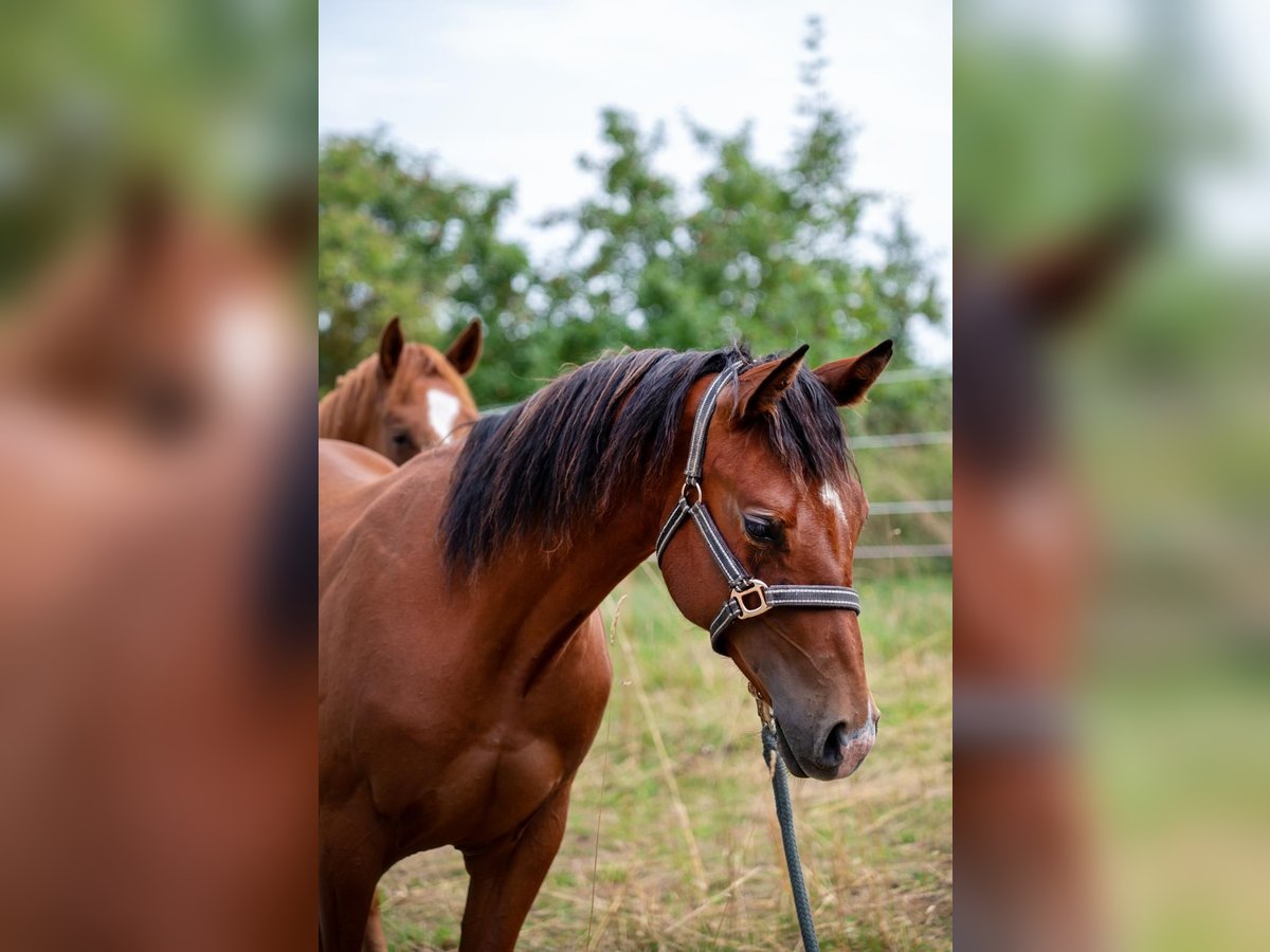 Camelot Of Angel - ein außergewöhnlich hübscher und großrahmiger Quarter Horse Hengst, geboren am 24. April 2024. Mit seiner großrahmigen Statur, dem klaren bay-Fell und einem geschätzten Endmaß von ca. 155 cm bringt er alles mit, was man sich von einem modernen Nachwuchspferd wünscht. Er wächst artgerecht in Offenstallhaltung mit gleichaltrigen Pferden auf und darf sich dort unter besten Bedingungen in Ruhe entwickeln. Er ist altersgemäß entwurmt, kennt das Fohlen-ABC, wird regelmäßig dem Hufschmied vorgestellt und gibt brav die Hufe. Im täglichen Umgang zeigt sich Camelot sehr menschenbezogen, anhänglich und zutraulich. Sein Charakter ist freundlich, ausgeglichen und absolut cool - so leicht bringt ihn nichts aus der Ruhe. Er lässt sich bereitwillig händeln, lernt schnell und überzeugt mit einem ruhigen, vertrauensvollen Wesen. Auch in der Bewegung weiß Camelot zu gefallen. Er zeigt jetzt schon gute, taktsichere Gangarten und bringt eine solide Grundlage für eine vielseitige Zukunft mit. Seine Abstammung vereint alte, bewährte Linien mit einem interessanten Cross zwischen Allround- und Reining/Cutting-Pedigrees, was ihn besonders spannend für den Westernsport macht. Ob Reining, Ranch Riding oder Allround - dieser junge Hengst bietet hervorragende Perspektiven für Sport und Freizeit.
