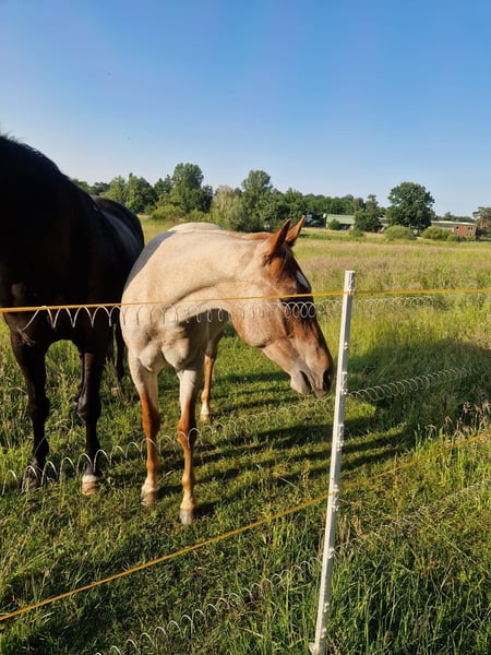 OH Trustfull Power - traumhafter, red roan Quarter Horse Junghengst, 5.2023 geboren mit einem geschätzten Endmaß von 155 bis 160 cm, mit erstklassiger Allroundabstammung und sehr lieben Charakter. Dieses kleine Juwel sucht neue Herausforderung. Der Hengst ist sehr aufgeschlossen, menschenbezogen und lieb im Umgang. Zurzeit steht er auf Sommerweide und darf seine Jugendzeit genießen. Trusty ist halfterführung und kennt alles, was man als Jungspund kennen und können sollte. Er ist gesund und 6-Panel n/n. Wurde mit einer Fohlenprämie ausgezeichnet. Trusty beeindruckt nicht nur durch seine Optik, auch weiß er sich zu bewegen und zeigt Talent für den Allroundbereich. Er ist einer der letzten Nachkomme von Good Impulses, ein Zippos Mr Good Bar Sohn aus einer Hot Impulse Tochter. Trustys Mutter ist eine Doc Chex Brother Tochter. Der Hengst ist ins EWU Jungpferdeprogramm eingezahlt. Trusty ist ein talentiertes Nachwuchspferd, das im Sport als auch als treuer Begleiter überzeugen wird. Ebenso auch zur Zucht interessant.