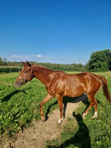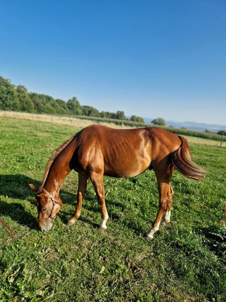 Anche noi stiamo cercando una casa a 5 stelle per il nostro "Leo". Il fresco stallone Quarter Horse (nato nel 2023) ha visto la luce con noi. Anche i suoi genitori sono nella nostra fattoria: Damigella: TL Blue Alice (Aint It The Blues) Sire: Zippos King Bar Leo è un "calzino fresco" sotto tutti i punti di vista. Vuole sempre compiacere il suo padrone ed è sempre calmo e tranquillo. Ha una conformazione atletica e corretta ed è dotato di un'andatura eccezionale. È adatto sia alle competizioni che al tempo libero. Attualmente è ancora uno stallone e non mostra alcun comportamento da stallone. È semplicemente un tesoro da gestire. Ha imparato tutto ciò che è necessario sapere a questa età: Dare gli zoccoli, presentarlo al maniscalco, fare la toelettatura, fare la doccia/lavaggio, camminare/guidare. Leo ha tutte le vaccinazioni di base, è regolarmente sverminato, ha un passaporto equino DQHA e un certificato di registrazione AQHA. Attualmente viene allevato con altri cavalli giovani. Può rimanere qui per un ulteriore allevamento o trasferirsi nella sua nuova casa. Se volete conoscere Leo, scriveteci.