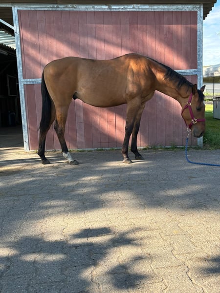 SR Reminics Dun It – 3-jähriger Quarter Horse Hengst in Sonderfarbe Dun Charakter, Talent und Farbe – dieser Hengst vereint alles, was das Reiner-Herz begehrt! SR Reminics Dun It ist ein bildschöner 3-jähriger Hengst in der beliebten Sonderfarbe Dun, der mit seinem Ausdruck, seinem Talent und seinem korrekten Gebäude auf ganzer Linie überzeugt. Er stammt aus bester Reining-Abstammung und zeigt schon jetzt, wohin seine Reise gehen kann: Sport, Show oder Zucht – alles ist möglich! ✅ Alter: 3 Jahre ✅ Farbe: Dun ✅ Rasse: Quarter Horse ✅ Ausbildung: angeritten ✅ Einsatzbereich: Reining, Allround, Zucht Er ist bereits angeritten mit 3 Monaten Basistraining, zeigt sich dabei lernwillig, kooperativ und aufmerksam. Er läuft in der beliebten Low-Headed Marnier like a Dun It! Seine Bewegungen sind weich und kraftvoll – genau das, was man sich für den Reiningsport oder vielseitigen Allroundeinsatz wünscht. Mit seinem korrekten Fundament, dem edlen Ausdruck und der soliden Basis bringt SR Reminics Dun It auch alle Voraussetzungen für den Deckhengsteinsatz mit – sowohl optisch als auch genetisch ein Gewinn für jede Zucht. Bei Interesse und für weitere Informationen freuen wir uns auf Ihre Kontaktaufnahme.