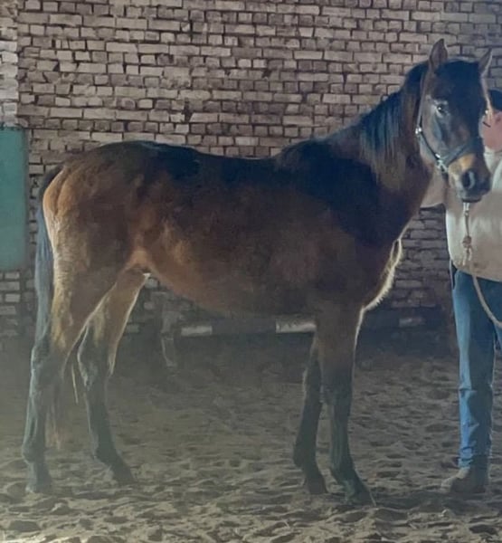 Castelo is a young Quarter Mix stallion (born July 28, 2023) who currently presents as a calm and pleasant type. He is still at the very beginning of his training and shows great potential for further development. - Halter trained - Not yet backed - Currently unbroken - Shows no pronounced stallion behavior so far - Attentive and clear in handling - Suitable as a future riding or breeding stallion (or for breeding purposes) Ideal for someone who wishes to continue his training themselves. The sale is due to age-related reasons as part of a reduction in a well-established horse herd built over many years. This is explicitly not a distressed sale.