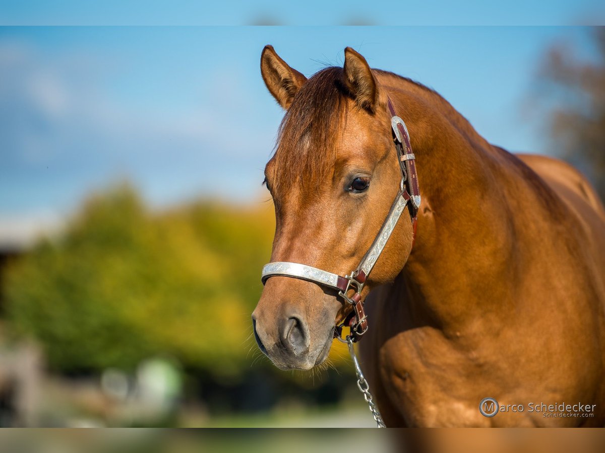 Bellissimo stallone in vendita! Figlio diretto di Gunnatrashya con una solida formazione di base in Reining. Tutti i manovre sono già state lavorate. "Murphy" è un stallone coraggioso, curioso e estremamente desideroso di imparare. Sia a mano che sotto la sella lavora in modo motivato e affidabile. Volentieri invio video su richiesta.