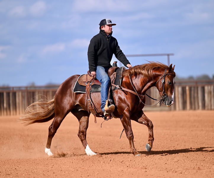 𝐍𝐀𝐓𝐄 𝐁𝐀𝐋𝐋𝐄𝐑𝐈𝐍𝐎 𝐇𝐎𝐑𝐒𝐄 𝐂𝐎'𝐬 ★ ℝ𝕀𝔸𝕋𝔸 𝔹𝕌ℂ𝕂𝕃𝔼 ★ 𝑺𝒉𝒐𝒘𝒄𝒂𝒔𝒆 Happening now thru SATURDAY | FEBRUARY 28th - Available EXCLUSIVELY on HorseBid's website! For more details and to register visit: www.Horsebid.com CONSIGNOR CONTACT: Nate Ballerino Horse Co 254-716-9588 LOCATION: Waco, TX BREED: Quarter Horse REGISTERED: Yes REGISTERED NAME: SPARKIN MCKINGHT * By High Brow Cat* COLOR: Sorrel HEIGHT: 14.2 AGE: 4 GENDER: Stallion If you’re looking for cow, chrome, and class — here he is. Sparkin McKnight, aka “7 Up,” is a gorgeous stallion sired by the legendary High Brow Cat and started the right way in a cow horse program. He’s loaded with talent and his maneuvers are all correct. His turnarounds are quick and balanced both directions, his lead departures and lead changes are smooth and automatic, and he’s a big, natural stopper that stays deep in the ground and always in frame. Expect classy, one-handed spins and strong, confident departures every time. On cattle, he’s got the look — plenty of style, natural cow sense, and the kind of presence that gets you noticed. He’s expressive, cowy, and eye-catching whether you’re boxing, fencing, or working in the middle. He’s not just a show prospect — we’ve used him outside as well. He’s been sorting, dragging calves, and has been pen roped on. He’s proven to be versatile, willing, and capable beyond the arena. Conformationally correct, balanced, and built the way they should be, he’s the kind you’d picture as the poster boy for AQHA. With his elite pedigree, athletic ability, eye appeal and talent, he is a big-time stallion prospect with all the tools to excel in the show pen and add serious value to any breeding program. Whether you want to finish him for competition or invest in a future herd sire, this stallion checks every box and has the ability to go far in anyone’s program. For more information, please call Nate Ballerino at 254-716-9588. Nationwide shipping can be arranged.