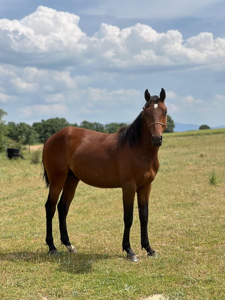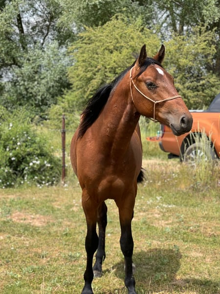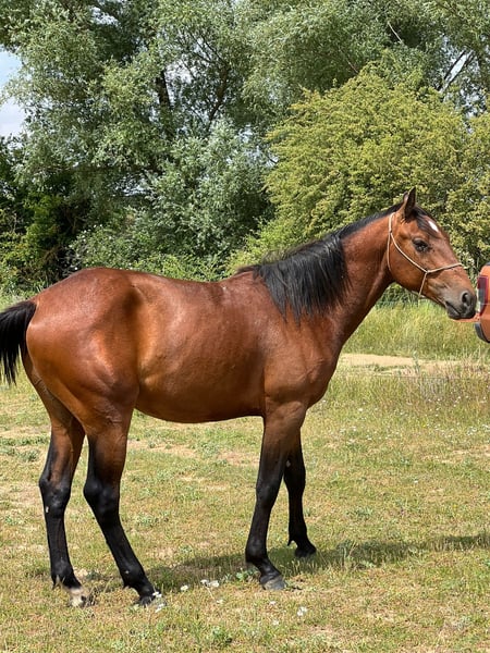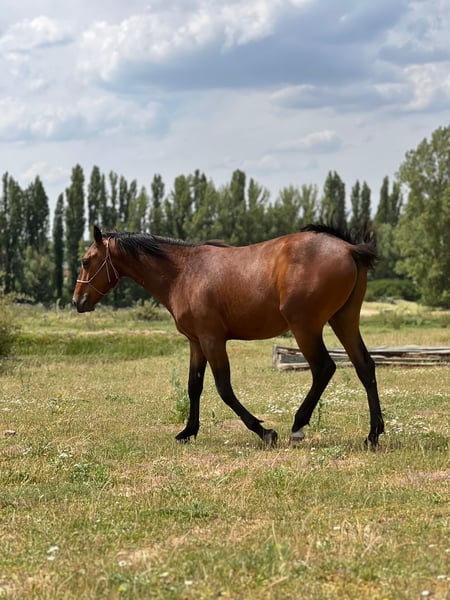Bob Potro cruzado de Quarter Horse (cuarto de milla) con Lusitano Castaño 155 cm altura actual en crecimiento Nacido en 2022 (2 años) Entero Potrazo de campo con grandes origenes, ideal para empezar un proyecto que tenga un futuro prometedor, con paso grande y serio y un galope resondo y completo. Cualquier consulta llama al 696613777