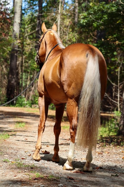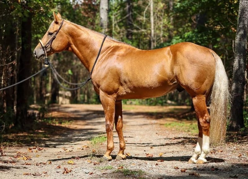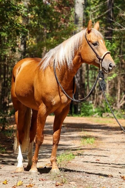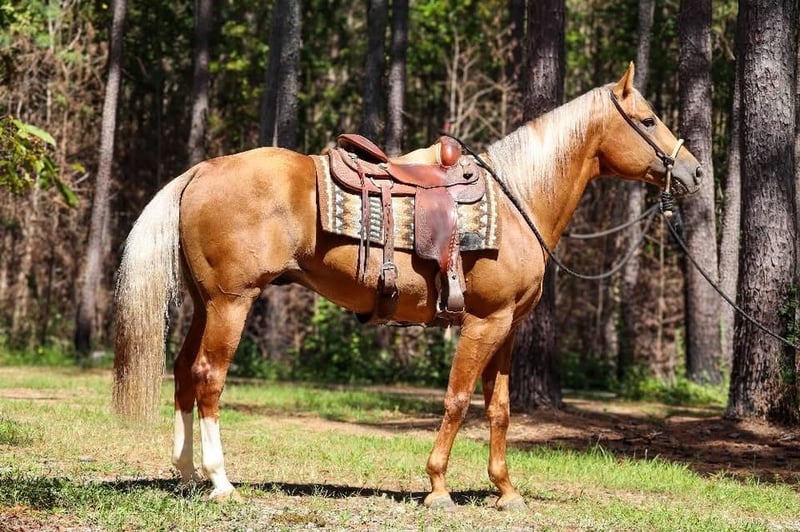 💫 Zippin After Noon 💫 (aka Remington) 2018 15.3hh AQHA Palomino Stallion. Remington is a wonderfully well-mannered boy who is as respectful under saddle as he is on the ground. He has never been bred and is a DREAMBOAT under saddle. Keep the family jewels and continue the legacy or let them go and have one heck of a jaw-dropping and versatile gelding. You don't find too many like this with great bloodlines, temperament, color, size and abilities. He is a massive sweetheart and has the personality of a giant puppy dog. He love affection, runs to meet you and is very personable. This big boy was very lightly started in his younger years and has shown/experienced the show ring since he was just a few months old with his dam. He has recently completed several months of training with us here at the Ranch had has surpassed all of our expectations since he had been sitting for several years. While he is vocal at times on the ground, he becomes very focused and driven when under saddle. In the arena, Remington moves out with beautiful strides and is very eager to please. He has a very smooth rocking chair lope and a gorgeous extended trot. On the trail, he is confident, sure-footed and can go out in groups or branch off for a solo trip. He has a great stop to him, is very responsive to leg pressure and is exceptionally soft in the mouth. We think Remington would be a great prospect for Ranch Riding, Ranch Versatility, Western Pleasure and Trail Riding. Don't miss your chance to own this gorgeous hunk! His price will continue to go up as his training continues. Remington is barefoot and sound. He is UTD on coggins and shots. PPE's welcome at buyers expense. Shipping available at buyers expense up to 200 miles. For questions, videos, pricing or to schedule a test ride, please call/text our trainer, Justin, at (757) 871-3688 Www.tenpointranch.com Tenpointranchnc@gmail.com Located in Hollister, NC, 27844 #TenPointRanch #TenPointPerformance #Stallion #Palomino #WesternPleasure #Stud #PalominoStallion #AQHA #QuarterHorse #QH #QuarterHorseStallion #QHStallion #RanchRiding #TrailRiding #RanchVersatility #PalominoProspect