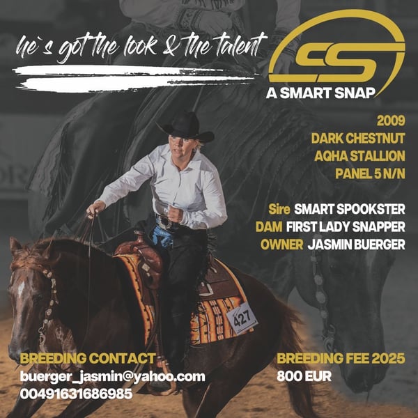 Snap ist ein toller 17jähriger gekörter (DQHA) QH Hengst mit ganz viel Charme und besten Fundament. Unter Emanuel Ernst wird er Sechster der FN Deutschen Meisterschaft 2018, ist multiple Bronze Trophy Champion und World Show Qualifier und außerdem feierte er schon viele Erfolge in anderen Open Klassen Verbänden, auch im Non Pro Bereich gibt er immer sein bestes. Er in Windeck zu Haus und genießt dort sein Leben auf saftigen Wiesen. Auch 3 seiner Nachkommen aus dem letzen Jahr stehen auf der Anlage. Mit seinen 17 Jahren gehört er noch nicht zum alten Eisen und pflückt noch immer Furchen in den Sand. Auch Bodenarbeit und Zirkuslektionen machen uns viel Freude. Snap wird häufig auch von unserer Tochter geritten und ist nie blöd, hengstig oder unkontrollierbar. Er ist einfach ein so tolles Pferd. Snap deckt im Natursprung. Bei allen Fragen gerne anrufen oder email schreiben. Wir freuen uns auf Nachrichten 😊