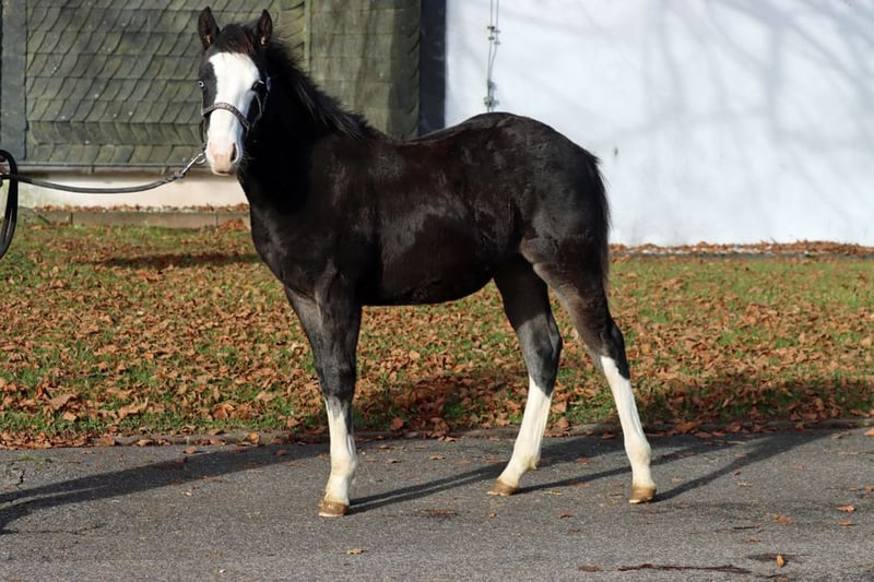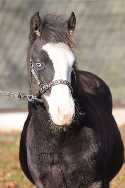 CHEYENNESJUJUGUNPLAY Ciemnobrązowy ogier AQHA w umaszczeniu splash overo (homozygotyczny czarny). Urodzony: 18.05.2025 Końca wzrostu około 150 cm 7-panel N/N EE Aa SW2/n