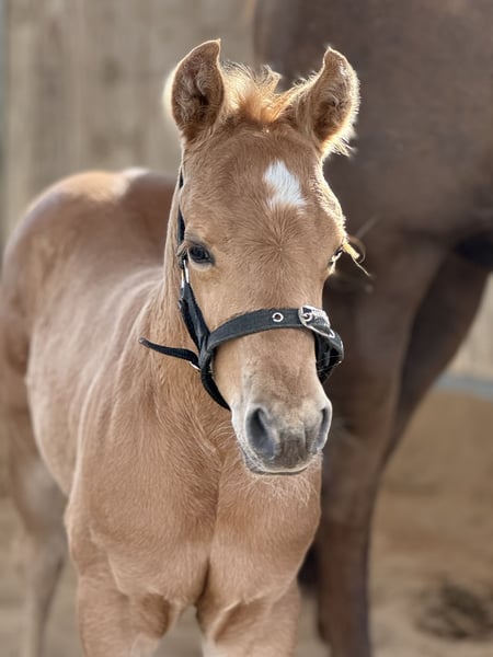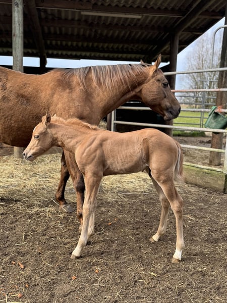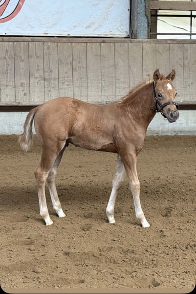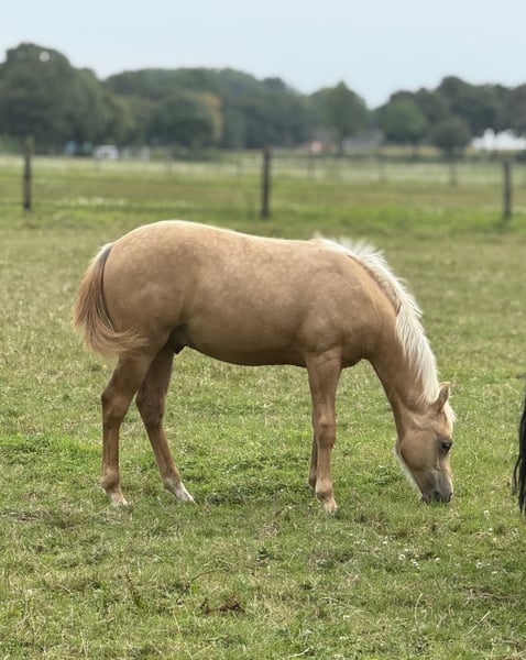 Zum Verkauf steht ein vielversprechender, kräftiger und äußerst korrekter junger Quarter Horse Hengst, geboren im Februar 2025. Dieser wunderschöne Palomino-Hengst hat ein geschätztes Endmaß von 150 cm und zeigt bereits jetzt viel Potenzial als Reininghorse. Er überzeugt durch sein ausgeglichenes Temperament und seine hohe Lernbereitschaft und kann sicherlich nicht nur als Reiningpferd glänzen. Grundlagen der Fohlenerziehung hat er schon kennengelernt, also überall anfassen, putzen, aufhalftern, Hufschmied usw. Er bekommt volles AQHA-Papier und einen DQHA-Equidenpass. Auch seine Abstammung kann sich sehen lassen: Namen wie Gunnatrashya, Shining Spark, Smart Spook und Topsail Whiz sind im Papier vereint. Er wird noch bei NRHA Germany und Euro eingezahlt!