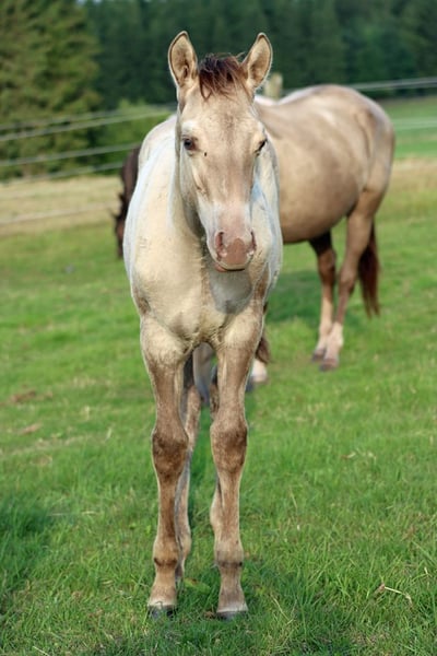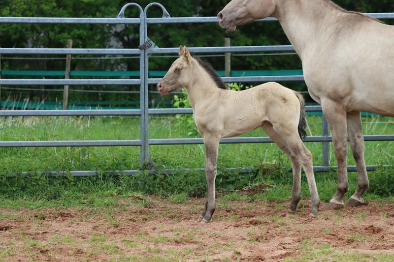 CHEYENNES VUDU KING Classic Dun Champagne AQHA Hengst Homozygot Black Geboren: 27.04.2025 Engrösse ca 152 cm 7 Panel N/N EE aa Dd CHch