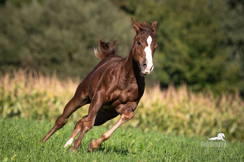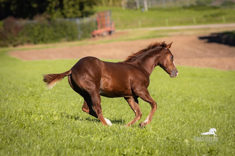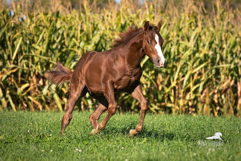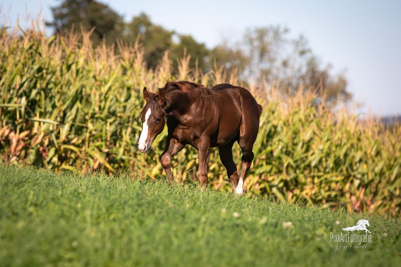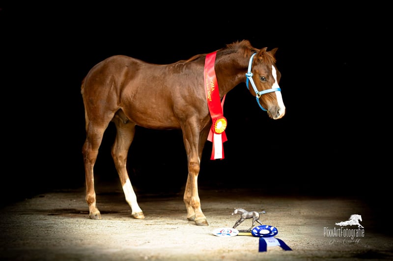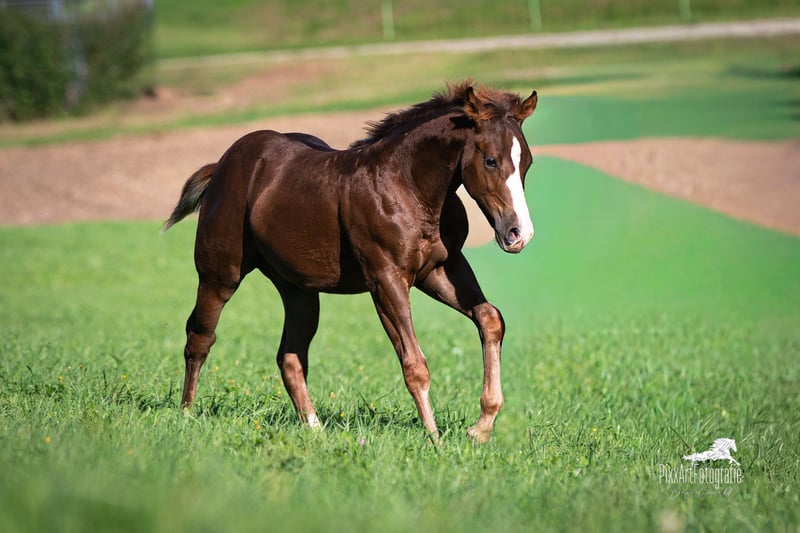 ‼️SOLD‼️ 🌟PLUS ME IM TRASHY🌟 Hier ist der Name Programm, denn TRASHY ist bereits ein Champion! Im Zuge der DQHA Zuchtschau überzeugte er die Zuchtrichter mit über 2 Punkten Vorsprung zum Zweitplatzierten von insgesamt 5 Hengstfohlen mit einer Gesamtnote von 82,84% und wurde anschließend Gesamtsieger aller vorgestellten Fohlen. Er punktete unter anderem in der Stellung mit herausragenden 92,36 %, im Typ mit 85,71% und im Fundament mit 80,13%. Wir waren von Anfang an absolut begeistert von diesem tollen Kerl und freuen uns jetzt umso mehr über diese hervorragenden Bewertungen und unser 1A Prämienfohlen, mit dem wir uns fürs Bundeschampionat in Münster qualifiziert haben. Hinzukommt seine Abstammung die keine Wünsche offen lässt. Sein Vater ist Smoking Trash (LTE $138.000 and counting), dessen älteste Nachzucht jetzt 2 jährig ist und sich sehr vielversprechend für die Futurities im kommenden Jahr entwickelt. 2024 war Trashys 3/4 Bruder im Blut (Dam by Wimpys Little Step) als Jährling mit $125.000 Highseller auf dem Sale. Seine Mutter ist Wimpybargainbeauty, eine direkte Wimpys Little Step Tochter, die selbst sehr erfolgreich in Open und Non Pro Reining und Ranch Riding geshowt wurde und immer noch geritten wird. Ihre Nachtzucht besticht durch starke Manöver, Rittigkeit und excellente Bewegungen. TRASHY wird doppelt registriert (AQHA & APHA) und erhält seinen Equidenpass von der DQHA. Er beherrscht jetzt schon das Fohlen ABC, kennt Hänger fahren, Hufschmied und wird selbstverständlich regelmäßig entwurmt. Ab November darf er ins neue Zuhause umziehen. Do you want your own Champion - here he is!