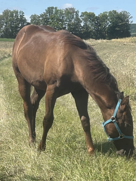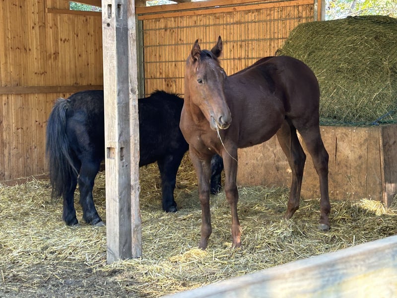 Wenn der richtige kommt, würde ich mich schweren Herzens von Ferdinand trennen. Ferdinand ist am 30.3.2025 geboren, er stammt von Custom Gun Smoke und mütterlicherseits von Smart Tina O´Rima (Vollschwester zu Rattlesnake) ab. Ferdinand ist sehr eifrig beim Lernen, brav beim Tierarzt und Hufschmied, er ist halfterführig und gechipt, Papiere sind beantragt. Ferdinand hat einen einzigartigen tollen Charakter und zeigt tolle Reiningsansätze und Bewegung, sein kräftiges Fundament lässt darauf schließen, dass er sicher über 1,50 wird. Private Lebensumstände verstärken leider diesen Schritt, Ferdinand kann ab Mitte September in sein neues Zu hause übersiedeln