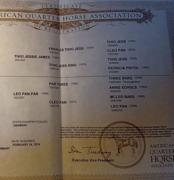 !!! Wir sind stolz Ihn bei uns zu haben "Joe" vereint in sich noch das beste alte Blut mit Jessie James (Vater) und Leo Pan Paar, Three Bars (Mutter) !!!