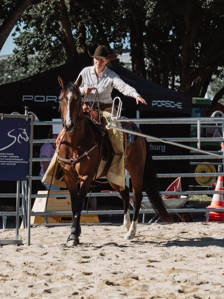 Superbe jument American Quarter Horse cherche de nouvelles tâches Cats N Docs * 10.05.2015 Père : Docs Gun Mère : Cat Touch This 5 Panel n/n Superbe mouvement, athlétique et travailleuse déjà présentée lors de foires/CHIO et tout aussi à l'aise en extérieur, que ce soit seule ou en groupe gentille au quotidien, vaccinée, vermifugée charge sans problème dans le van et reste seule avec papiers AQHA et passeport équin valide À donner uniquement en pension en plein air avec suffisamment d'espace de mouvement, de préférence en compagnie d'autres chevaux pâture en box, pas d'allergies ou autre en bonne santé, pas de boiteries, pieds nus ou ferrée, entièrement montable Intéressante également en tant que jument de reproduction, anciennes lignées de cutting dans un type un peu plus moderne Connaît la machine à cutting, pas encore d'expérience avec le bétail Pour plus d'informations, n'hésitez pas à me contacter Prix à débattre 125🥕🥕 Localisation : Hesse