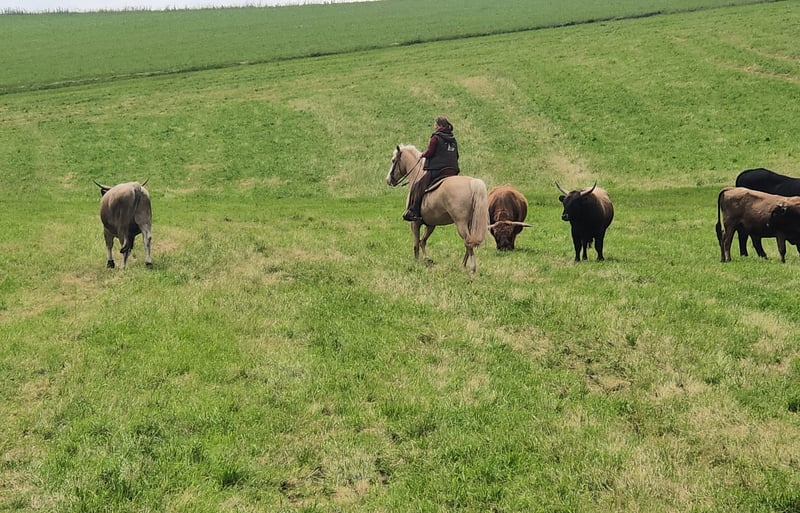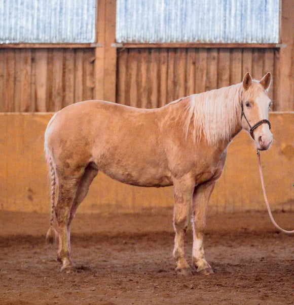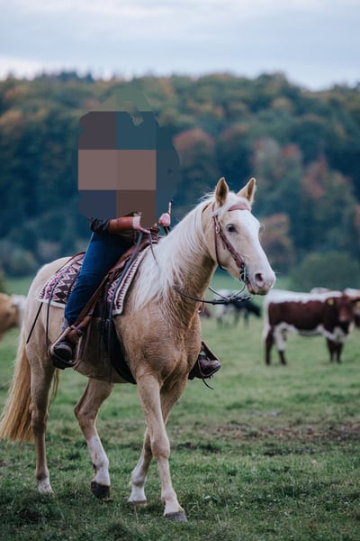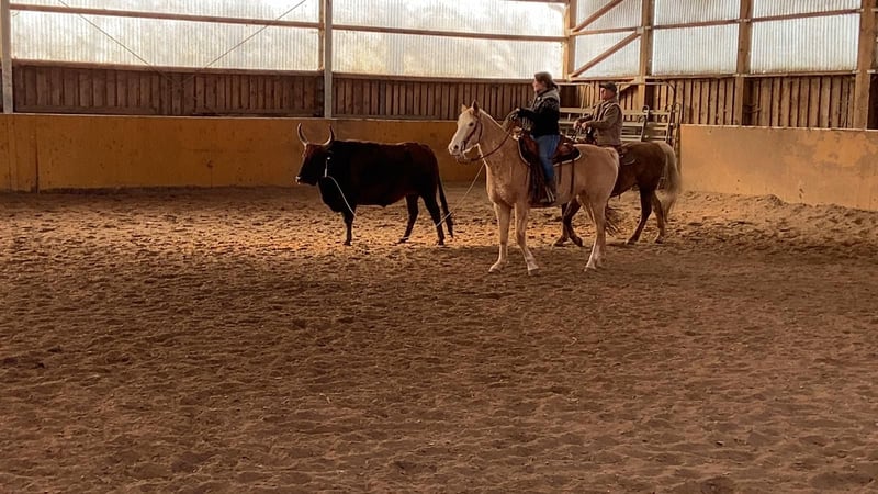 DCs golden Lulani ,,Lu,, *03/2016 Trenne mich von meiner Stute Lu. Ich habe sie, seitdem sie 6 Monate ist und trenne mich aus persönlichen Gründen von ihr. Ich habe sie größtenteils allein im Gelände geritten, aber hin und wieder auch in der Halle. Lu läuft in allen drei GGA sicher. Sie ist neugierig und eine absolute Lebensversicherung beim Reiten. Wir waren oft an Rindern. Sowohl in der Halle, auf der Wiese und auch im freien Gelände hat sie immer einen guten Job gemacht und ist nie gebuckelt, gestiegen, oder durchgegangen. Die Arbeit am Rind macht ihr sehr viel Spaß und liegt ihr auch. Dummys ropen haben wir geübt und auch dabei war sie immer cool. Den ein oder anderen Orientierungsritt sind wir auch zusammen geritten. Auch dabei war sie unerschrocken und sicher. In der Freiarbeit zeigt sie sich sehr motiviert und willig. Leider hab ich hier aus Zeitgründen wenig gemacht. Lu ist 1,60m groß, lässt sich allein verladen und läuft schon immer problemlos barfuß. Sie kann stundenweise allein auf dem Paddock und auch auf der Koppel bleiben. Momentan steht Lu zusammen mit einem Wallach und einer Stute. Sie zeigt sich hier nicht ranghoch und frisst problemlos mit beiden aus einer Raufe. Kennt Hunde und sämtliche Hoftiere. Sie ist kein Kinder-/Anfängerpferd, da sie im Umgang einen sicheren Menschen benötigt. Platz vor Preis Kein Notverkauf