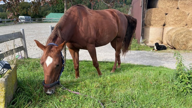 TFR A Blaze Of Glory ist eine bildhübsche, großrahmige und korrekt gebaute Quarter Horse Stute. Sie wurde im Januar 2016 geboren, ist chestnutfarben und hat ein Stockmaß von ca. 163 cm. "Eve" ist eine Stute mit einem ganz lieben Charakter. Sie ist sehr menschenbezogen, freundlich und neugierig und zeigt sich im täglichen Umgang stets unkompliziert und gelassen. Im Handling ist sie sehr brav und angenehm. Eve ist schmiede- und verladefromm, geimpft und regelmäßig entwurmt. Eve kennt sowohl Boxenhaltung mit Paddock und Weidegang als auch Offenstallhaltung und ist sehr sozial sowie herdenverträglich. Unter dem Sattel zeigt sie sich ruhig, brav und angenehm zu reiten. Sie verfügt über weiche, gute Gangarten und ist sehr bequem zu sitzen. Auch Reitfehler verzeiht sie, weshalb sie sich ebenfalls gut für Anfänger eignet. Gleichzeitig bringt sie viel Lernwillen und Talent mit und kann auch einem ambitionierten Reiter viel Freude bereiten. Sie ist fein an den Hilfen und gut ausgebildet. Eve besitzt eine sehr gute Westernausbildung und wurde kontinuierlich von Trainern gearbeitet sowie auf verschiedenen Kursen weiter gefördert. Sie wurde bereits erfolgreich in Ranch Riding, Ranch Rail, Trail, Pleasure und Horsemanship geshowt. Mit dem fliegenden Galoppwechsel wurde begonnen, dieser ist jedoch noch nicht vollständig sicher. Auch im Gelände zeigt sie sich stets ruhig und unkompliziert, selbst wenn sie alleine unterwegs ist. Bei ihr wurde 2020 als Zufallsbefund bei einer AKU Spat festgestellt, womit sie bisher jedoch keinerlei Einschränkungen oder Lahmheiten gezeigt hat. Röntgenbilder können selbstverständlich eingesehen werden. Im Jahr 2025 wurde zusätzlich auf beiden Vorderhufen ein Hufrollenbefund festgestellt. Daraufhin erhielt sie eine Stammzellentherapie, die sehr gut angeschlagen hat, sodass sie seitdem lahmfrei ist. Laut Tierarzt, Hufschmied und Trainer ist sie aktuell zu 100 % belastbar. Vorne läuft sie mit Spezialbeschlag, hinten barhuf. Diverse Röntgenbilder sowie eine AKU können eingesehen werden. Eve ist ein tolles Pferd für einen ambitionierten Reiter, der sich von ihrer Diagnose nicht abschrecken lässt und weiterhin mit ihr arbeiten möchte. Ob als Turnier- oder zuverlässiger Freizeitpartner - sie ist einfach ein liebes Pferd.