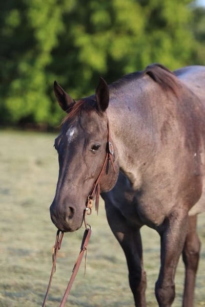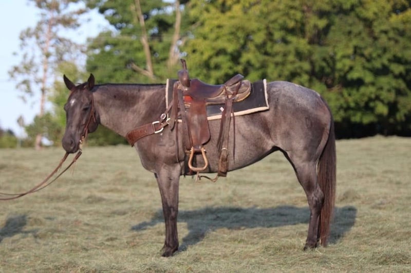 ONLINE AUCTION Place your bids at www.PlatinumEquineAuction.com Starting Bid $3500 Auction ends September 29th, 2024 Need a new saddle? Check out White Rock Saddles on our website or Facebook! Barbie is 9 year old blue roan mare that stands at 15.3 hands and is a solid, well-built horse with a stocky, muscular frame. Her blue roan coloring turns heads everywhere we go, and her gentle demeanor makes her a pleasure to be around. Barbie has been extensively trail ridden, her calm nature offers more “woah” than “go,” making her an ideal mount for riders looking for a steady, easy-going trail partner. In addition Barbie has also been used to gather and check cattle along with fence lines. This girl is an all-around good fit for someone looking for a reliable horse that can either continue to hit the trails or be used in a lesson program. She stands quietly to be bathed, groomed, clipped, and shod!! For more information please text or call Kassie Long 443-991-9282 Located in Marshall, MO. ONLINE AUCTION Place your bids at www.PlatinumEquineAuction.com Starting Bid $3500 Auction ends September 29th, 2024 Need a new saddle? Check out White Rock Saddles on our website or Facebook!