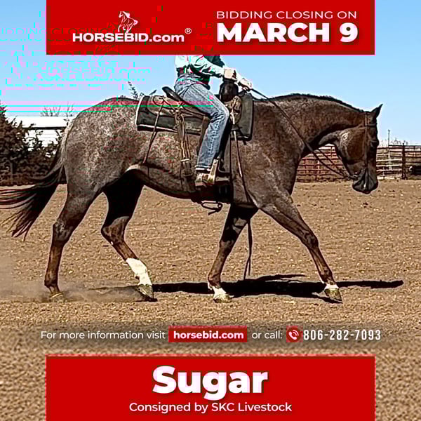ℳ𝒶𝓇𝒸𝒽 ♦️𝐑𝐈𝐃𝐄𝐑'𝐒 𝐂𝐇𝐎𝐈𝐂𝐄♦️ Happening now thru MONDAY | MARCH 9th - Available EXCLUSIVELY on HorseBid's website! For more details and to register visit: www.Horsebid.com CONSIGNOR CONTACT: SKC Livestock 806-282-7093 LOCATION: Canyon, Texas BREED: Quarter Horse REGISTERED: Yes REGISTERED NAME: SS SHES SO SMOOTH COLOR: Red Roan HEIGHT: 15 hands AGE: 11 GENDER: Mare