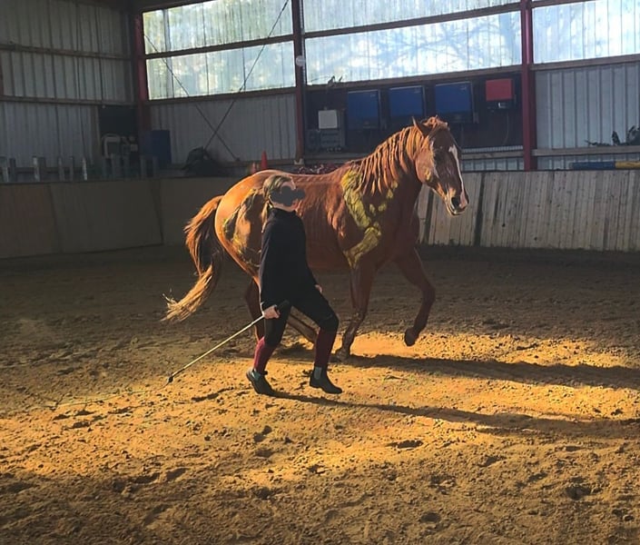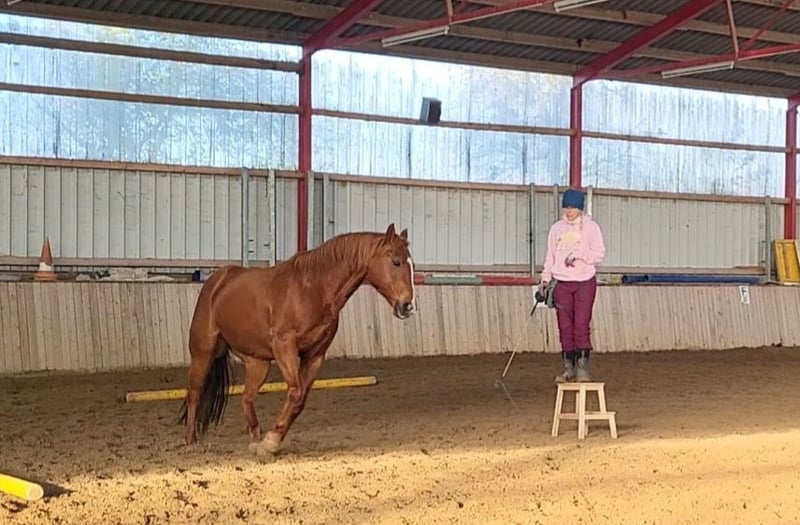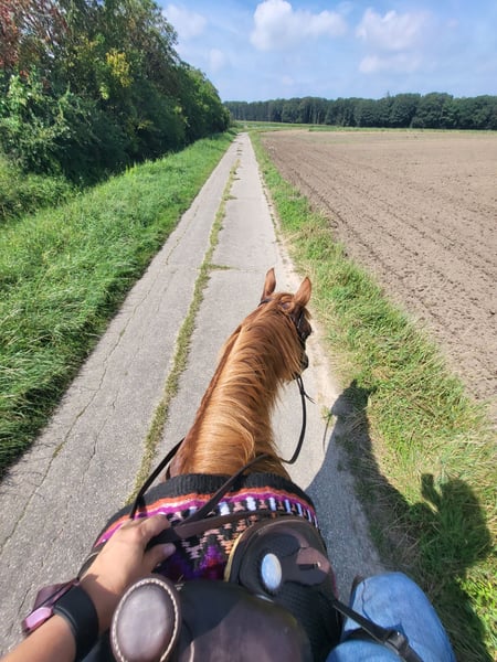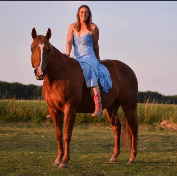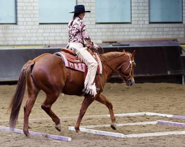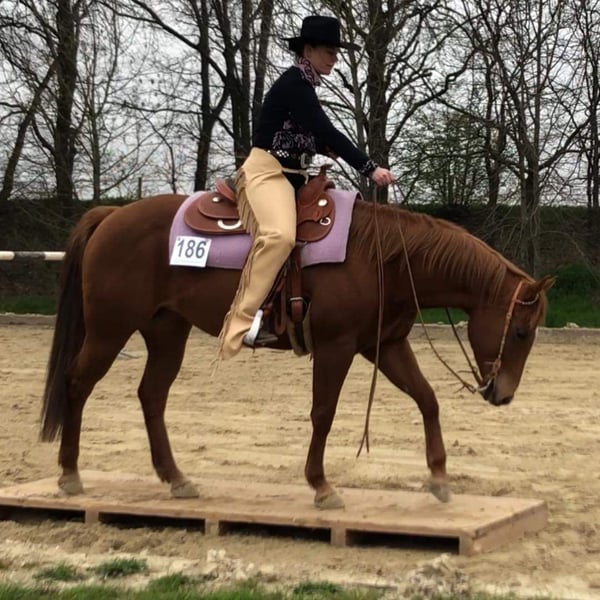 Proud ist mit 3,5 jahren von mir angeritten worden und hat 5 jährig mit mir den Trainerschein absolviert. Sie ist LK1-2 Niveau ausgebildet und kennt die Turnierdisziplinen Ranchriding, RanchTrail, PLeasure, Westernriding, Horsemanship und Trail. Ich selber bin sie nur ein paar mal erfolgreich in der LK 3 gestartet, da Turniere nicht meins sind. Ich habe viel Wert auf eine gute Ausbildung gelegt. Ich war mit ihr auf Henning Daude Kursen und mehrfach auf dem Horsemanship Camp der DQHA in Marl bei Döring. Außerdem habe ich mit ihr einen Tageskurs bei Cuttinglegende Paul Derrez teilgenommen der fand das sie Talent fürs cutting zeigt. Ich habe mit ihr an der Landes Fahr und Reitschule in Langenfeld an einer Weiterbildung teilgenommen. Sie geht gut auf den Anhänger und ist brav beim Fahren. Sie gibt vorbildlich die Hufe, auch hier hat sie mich bei meiner Ausbildung zum Hufbearbeiter viel gelehrt. Sie ist immer gut geritten worden und kennt auch das Gelände. Ich war mit ihr auch schon im See. Sie liebt Freiarbeit worin sie sehr aufgeht. Sie ist außerdem sehr Kinderfreundlich, ich hatte eine 13 jährige Reitbeteiligung die leider durch einen privaten Unfall nicht mehr reiten konnte und uns deshalb verlies, die 8 jährige Tochter meines cousins ist Sie auch schon frei geritten. Man kann auf ihr einfache Voltigierlektionen ausführen. Proud hat einen passenden Sattel und ihre Ausrüstung wurde immer auf Passform gecheckt. Sie kann im Snaffle, Bit, Knotenhalfter oder Bosal geritten werden, mit Sattel, Sattelpad oder ohne Sattel, sie reagiert fein auf alle Hilfen. Mit dem richtigen Reiter ist sie unerschrocken draußen unterwegs. Sie arbeitet gerne auch in der Halle und auf dem Platz und ist dort eher motiviert, sie ist weder triebig noch das sie zu schnell ist. Bei neuem oder unbekannten ist sie erst skeptisch, aber immer handelbar. Sie kann alles Formen von gymnastizierenden Lektionen. Schulter/Kruppe herein in allen Gangarten, Traversalen in allen Gangarten, fliegender Galoppwechsel. Sie stoppt gut auf der Hinterhand (so gut es ohne Eisen geht) kann gut den Rollback. Sie kann eine Hinterhandwendung, diese ist aber nie zum Spin austrainiert worden. Sie kennt Stangenarbeit und auch reiten über Planen oder reiten mit Fahne. Auf ihrem Papier steht sie sei ein Sorrel, doch sie hat einen Aalstrich und ist somit Dun. Ihre Hufe wurden immer regelmäßig gemacht und der Zahnarzt kommt auch regelmäßig. Proud hat keine Eisen. Ich habe während meiner Ausbildung zur Pferde Physiotherapeutin und Chiropraktik und Akupuntur an ihr "geübt" und sie hat sehr davon profitiert. Sie kennt auch Hunde am Pferd, ein Horse and Dog Trail oder ausritte mit Hund sind somit mit ihr auch möglich. Vor 2 Jahren wurde sie am Vorderbein getreten und musste genäht werden. Die Verletzung war nur oberflächlich und schränkt sie keinesfalls ein. Proud ist ein allround Profi, der zu jedem Spaß zu haben ist! Sie ist eine tolle Begleiterin und will immer gefallen. Durch ihre gute Abstammung würde sie sicherlich auch eine gute Mutter von einem erfolgreichen Nachkommen werden. Ihr aktueller Trainingszustand ist eher wenig trainiert da mir einfach die Zeit für sie fehlt, dies ist auch der Grund warum ich sie verkaufe. Sie wird nicht blöd oder zickig auch wenn sie länger nicht geritten wurde! weitere Bilder und Videos sind auf der Instagram Seite CrewUp Westerntraining zu finden. https://www.instagram.com/crewup_westerntraining?igsh=Nnpybmp6ZzhwYWZt