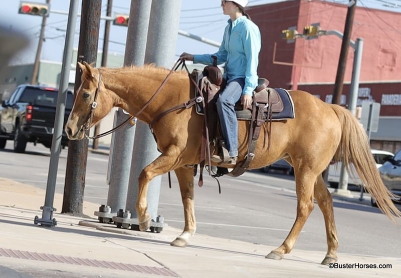 ONLINE AUCTION Place your bids at www.PlatinumEquineAuction.com Starting Bid $3500 Auction ends March 9th, 2025 Need a new saddle? Check out White Rock Saddles on our website or Facebook! Cookie is the sweetest little all around starter horse! She’s just the right age and just the right size to suit just about anybody! She has done lots of trail riding, tons of little entry level 4-H shows, and has also competed at play days. She is very uncomplicated to ride – a simple straight-line, old-school, just point and shoot, ranch horse/rope horse style of ride. Simple and easy! She has absolutely exceptionally smooth gaits, an absolutely incredibly smooth little hobby horse lope, that would make just about any level of rider feel comfy cozy and right at home! She is about as tolerant and forgiving of a horse as you can find! Cookie has been primarily used for trail riding the last 2 years. She is an easy keeper and lives outside and looks great pasture kept, she’s naturally full-bodied and a pretty cute little mare. She has an alert expression and is already ready for the next adventure. She’s exceptionally good in town – absolutely loves it! She did tons of trail riding in urban areas and it takes a whole lot going on for her to be concerned about anything, she’s seen it all!!! Don’t miss out on this fun mare and please call anytime with any questions about Cookie contact Buster Horses Ashley 214-605-7174 Cookie is located in Weatherford, TX – one hour from Dallas / Fort Worth International Airport. She is an easy day trip or fun overnight trip to come try out, from anywhere! We are experienced knowledgeable sellers and we can help with quickly arranging affordable shipping to any buyer’s location – we have experience shipping horses worldwide – including regularly to Hawaii, Canada, Mexico, Europe, and South Africa. Go to our Facebook page Buster Ranch and check our website for buyer reviews, for more videos, additional info, etc: https://busterhorses.com/Palomino-Cookie ONLINE AUCTION Place your bids at www.PlatinumEquineAuction.com Starting Bid $3500 Auction ends March 9th, 2025 Need a new saddle? Check out White Rock Saddles on our website or Facebook!