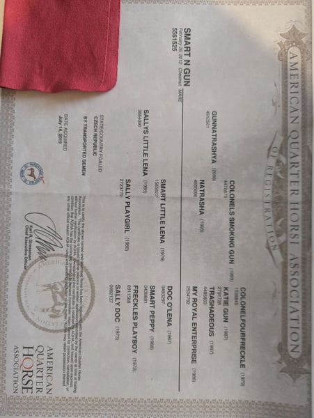 For sale: American Quarter Horse mare – born in 2012 This beautiful American Quarter Horse mare, born in 2012, is available. She stands at 15.0 hands and comes from a reputable breeding program. She is known for her strong conformation and friendly temperament. She is ideally suited for leisure riding, breeding, or training, thanks to her versatility and distinctive character. The mare is healthy and has a foal by Shiners Voodoo at her side. If you are interested or have any questions, please feel free to contact me. I would be happy to arrange a viewing appointment.