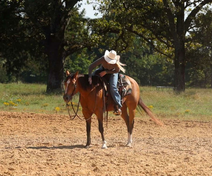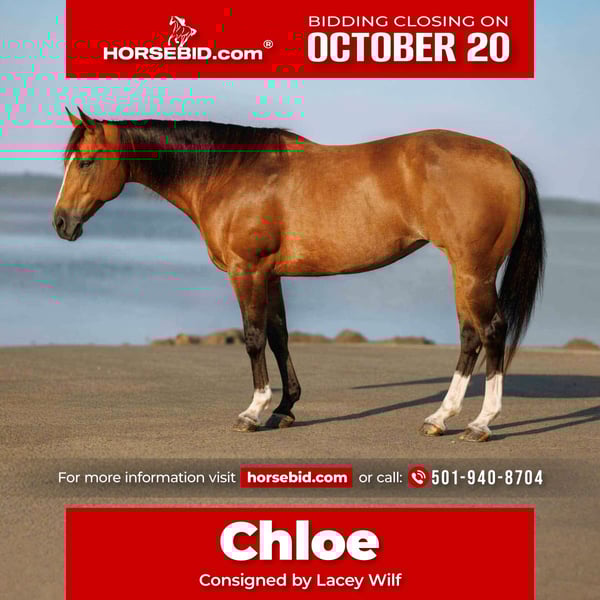 ♦️ 𝐭𝐡𝐞 𝐀𝐌𝐄𝐑𝐈𝐂𝐀𝐍 𝓕𝓪𝓵𝓵 𝓒𝓵𝓪𝓼𝓼𝓲𝓬 ♦️ Happening now thru MONDAY | OCTOBER 20th - Available EXCLUSIVELY on HorseBid's website! For more details and to register visit: www.Horsebid.com CONSIGNOR CONTACT: Lacey Wilf 501-940-8704 LOCATION: Quitman, AR BREED: AQHA REGISTERED: Yes REGISTERED NAME: Sugar Bear Foxy COLOR: Buckskin HEIGHT: 14.2 AGE: 14 GENDER: Mare Sugar Bear Foxy, known around the barn as Chloe, is a 2011 model AQHA-registered mare standing a well-balanced 14.2 hands. She’s the picture of versatility and class—steady minded, well-rounded, and always willing to please. Chloe transitions seamlessly between English and Western, moving with rhythm and softness whether she’s circling in the arena, cruising through a set of jumps, or riding out across open country. She catches both leads easily, lopes collected circles, and stays light and responsive to leg and seat cues. She’s also been around cattle and worked at the cow sale, handling the movement and commotion with quiet confidence. On the trail, Chloe is as trustworthy as they come—sure-footed, confident, and steady in any terrain. She crosses creeks, bridges, and brush without hesitation. She moves with balance and awareness, and stays calm whether leading, following, or riding out alone. She’s seen wildlife, dogs, and traffic without missing a beat, and her smooth, easy gaits make her a pleasure for long rides. Chloe is truly user-friendly in every sense. She’s patient, forgiving, and exceptionally tolerant, making her a safe, confidence-building partner for riders of any level. She adjusts easily to her rider—responsive for an experienced hand yet gentle and unbothered for a beginner. On the ground, Chloe is a complete lady—easy to catch, kind to handle, and loves attention. She stands quietly to groom, tack, bathe, and shoe, loads and hauls with ease, and stays steady in any setting. For anyone seeking a true all-around mare—just as comfortable in the arena as she is on the trail or around livestock—Chloe is the total package: dependable, versatile, and endlessly enjoyable to ride.